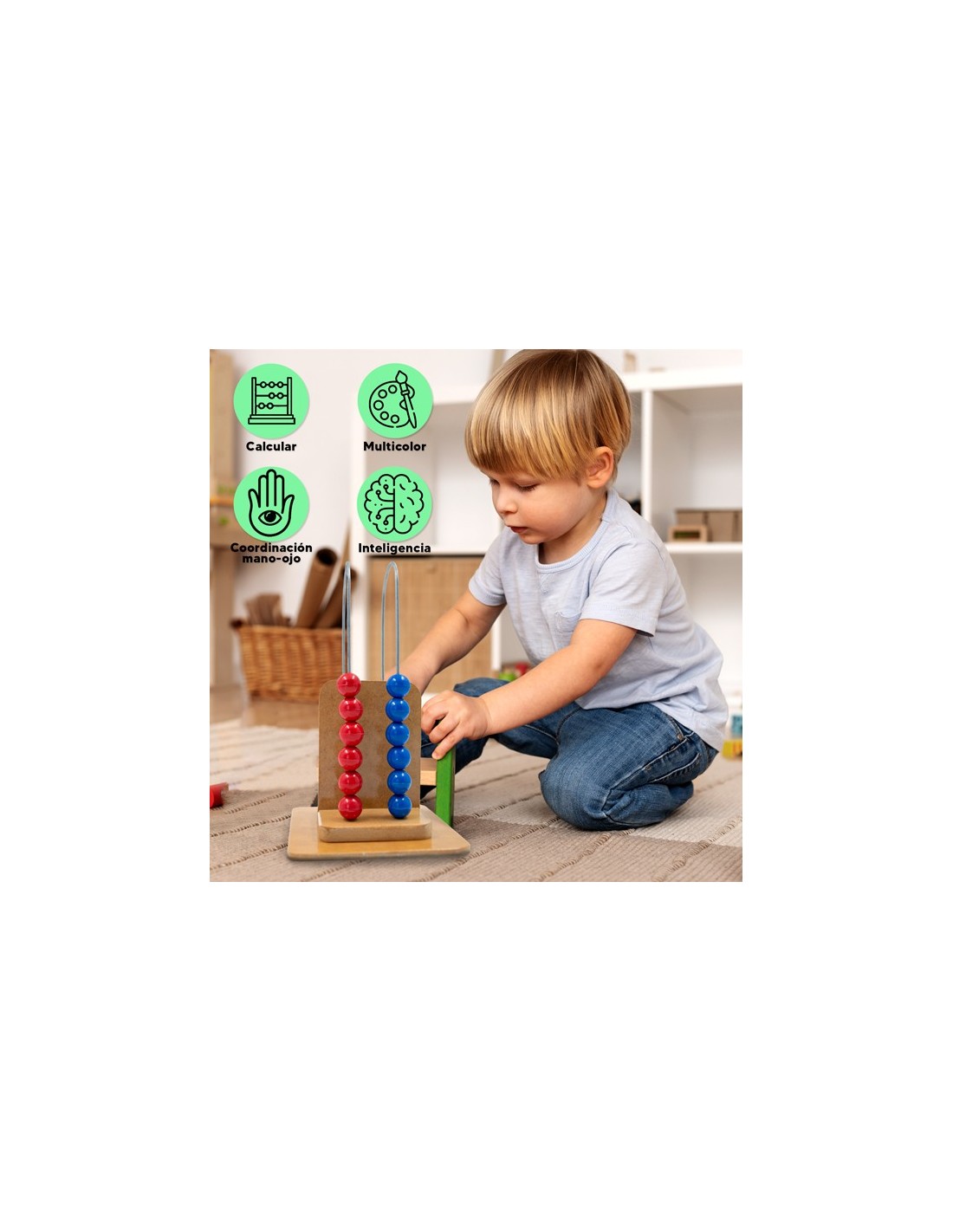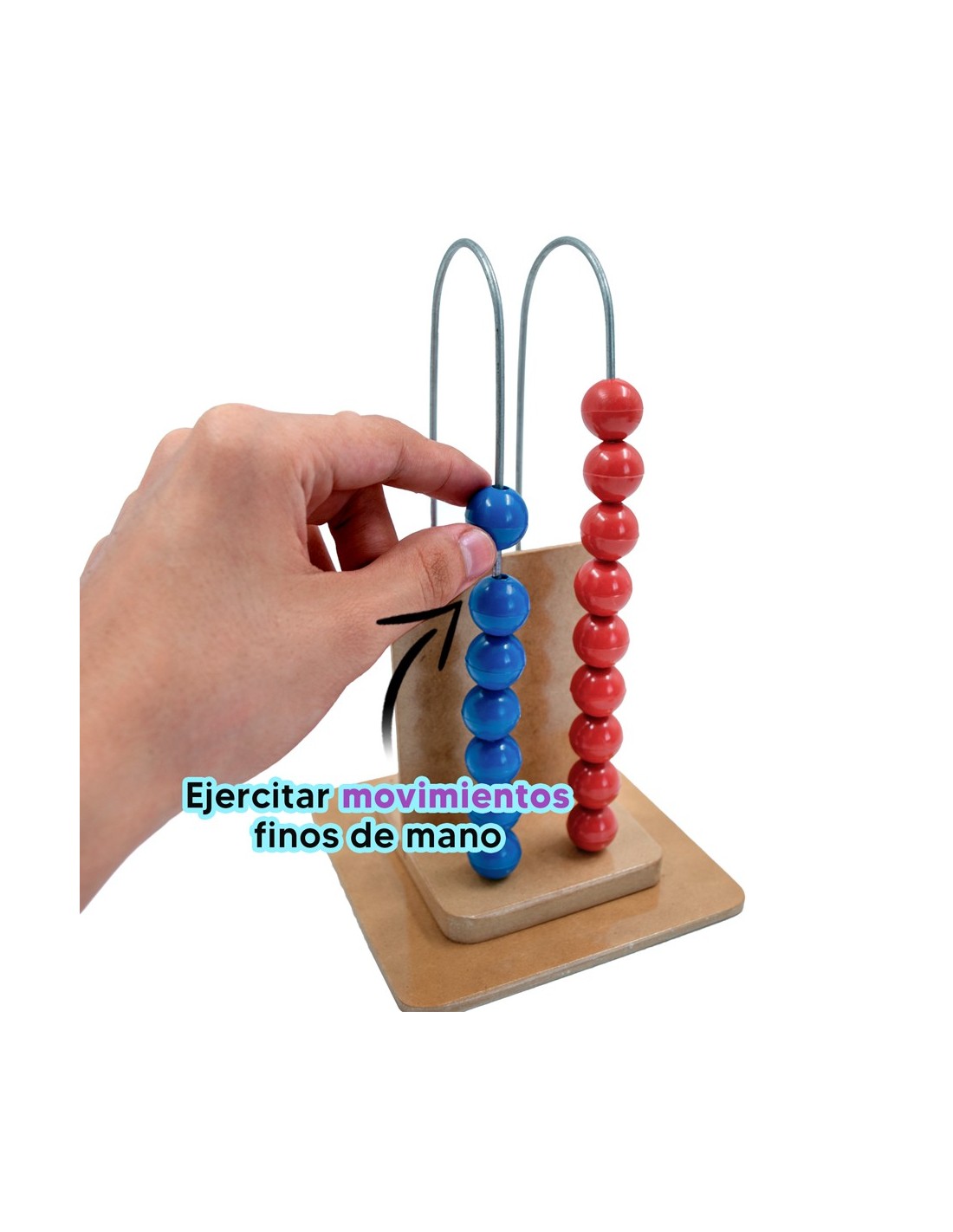 La herramienta de conteo clásica: el ábaco curvo con 2 filas de 10 cuentas de colores vibrantes. Aprende unidades, centena.