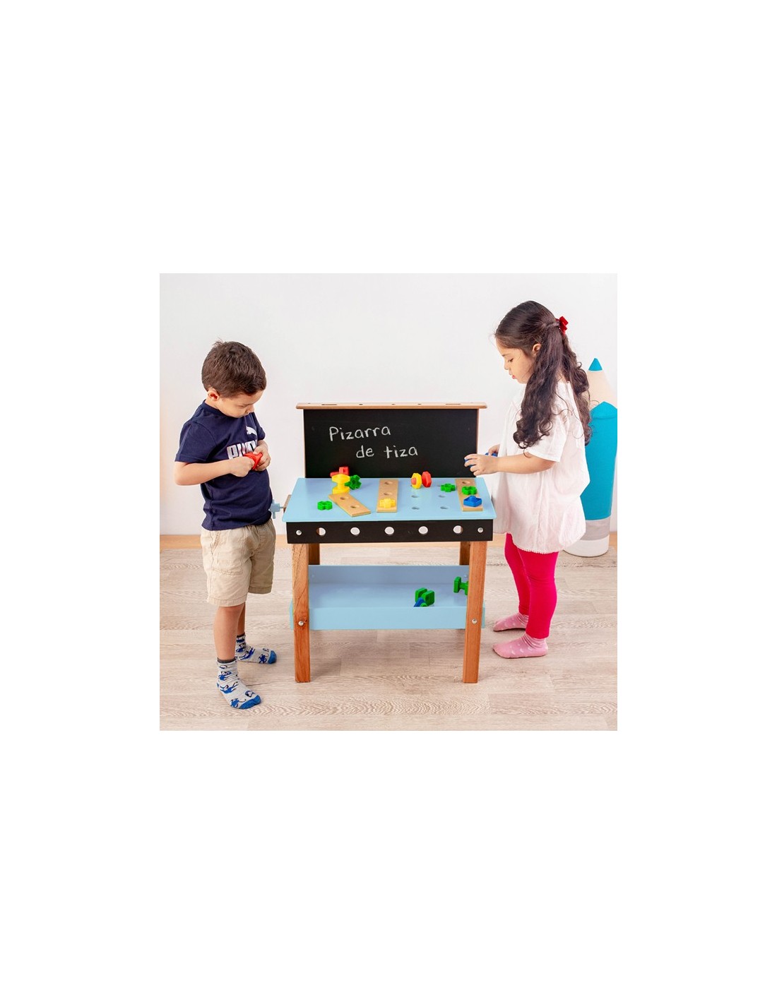 Contribuye a que el niño sea organizado, pues el juego mismo hace que se acostumbre a ordenar y clasificar las piezas. Incluye un set de herramientas de plástico.