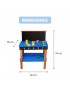 Promueve la creatividad e imaginación en los niños. Contiene piezas para enroscar y desenroscar que a través de la manipulación de los dedos y las manos ejercita y desarrolla la motricidad fina de los niños. Contiene una pizarra para que los niños escriban con tiza su nombre.