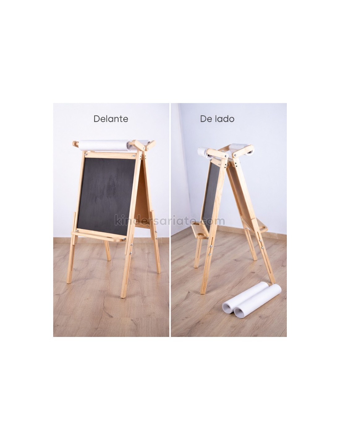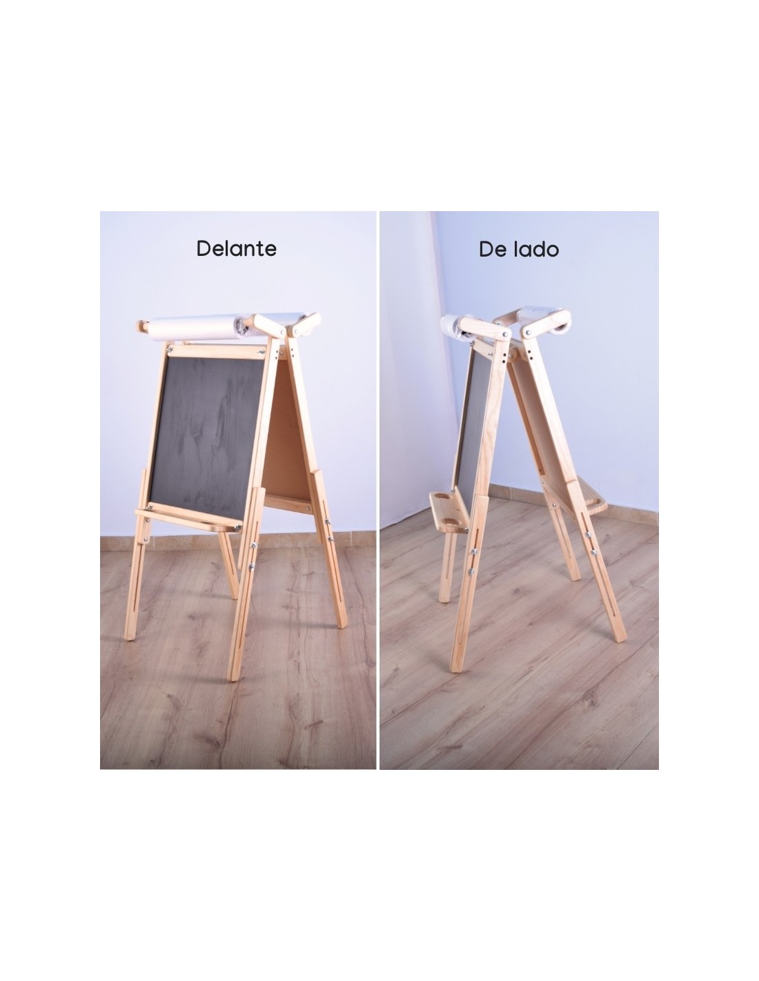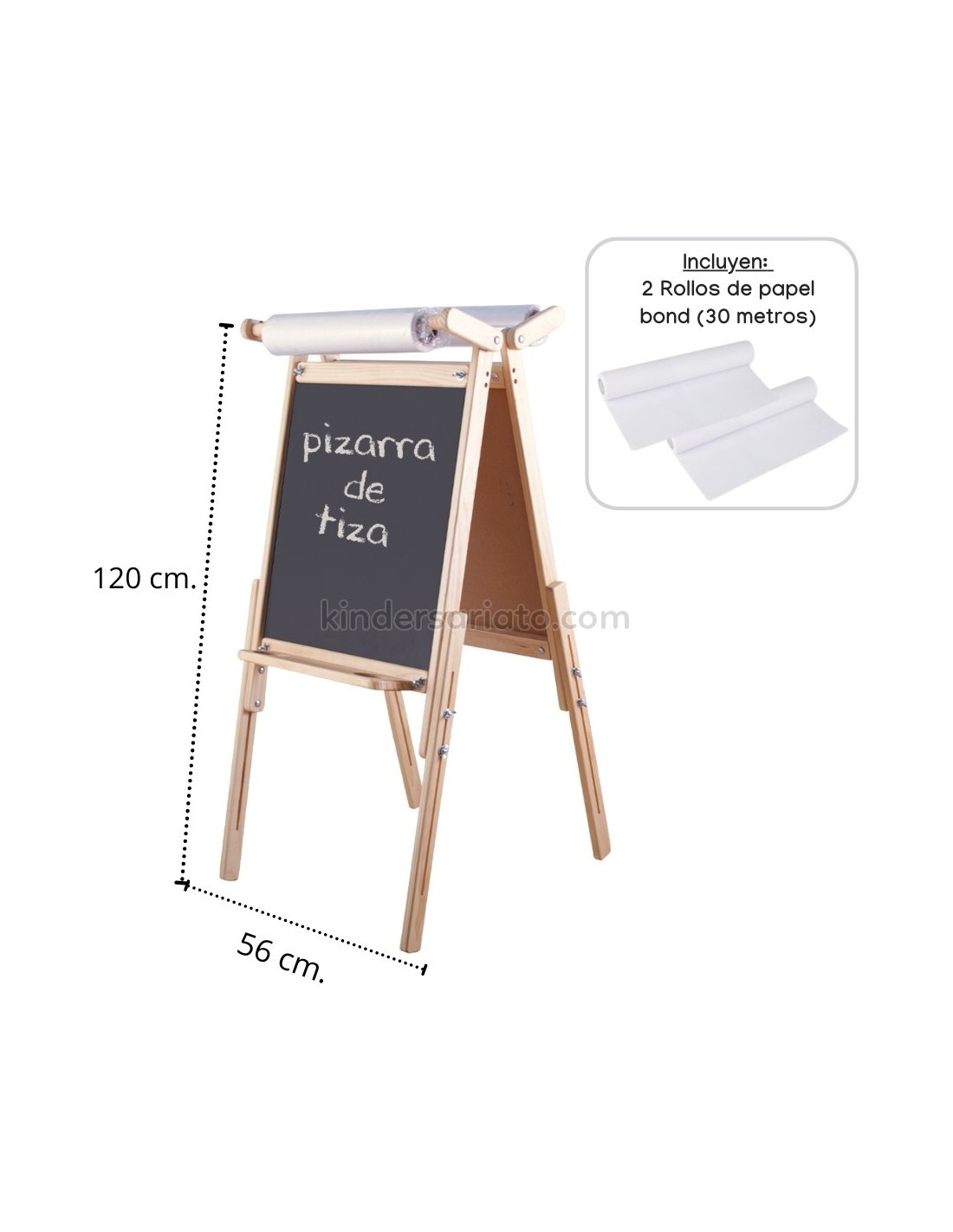 - Contiene pizarra de tiza y porta rollo para pintar.