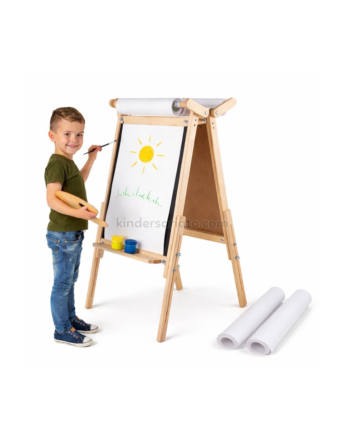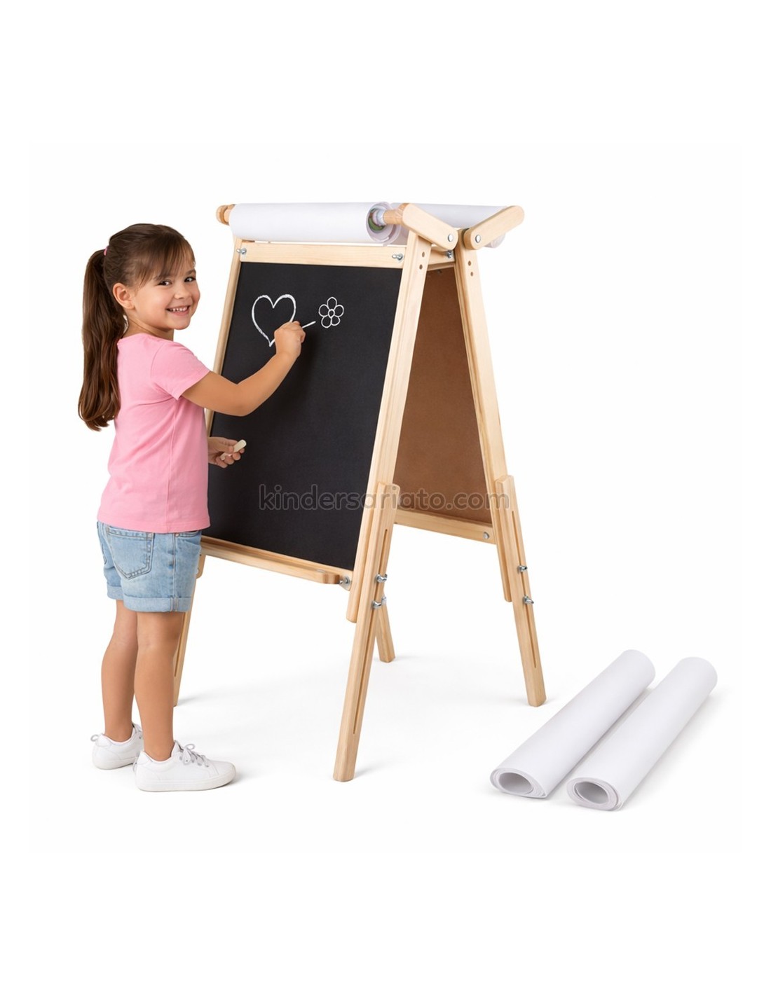 Acabados de lujo y en tono natural de la madera. Los niños pueden pintar de pie o sentados. La estructura sólida de este caballete de arte hace que sea muy seguro para los niños pequeños. Madera de pino no tóxica, respetuosa con el medio ambiente, de alta calidad para mantener los más altos estándares de salud y seguridad.