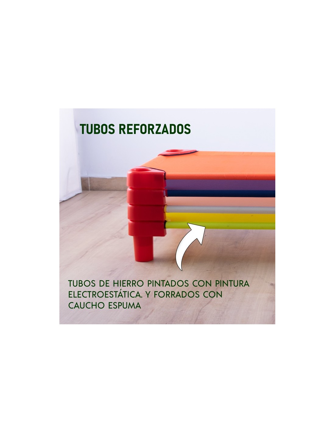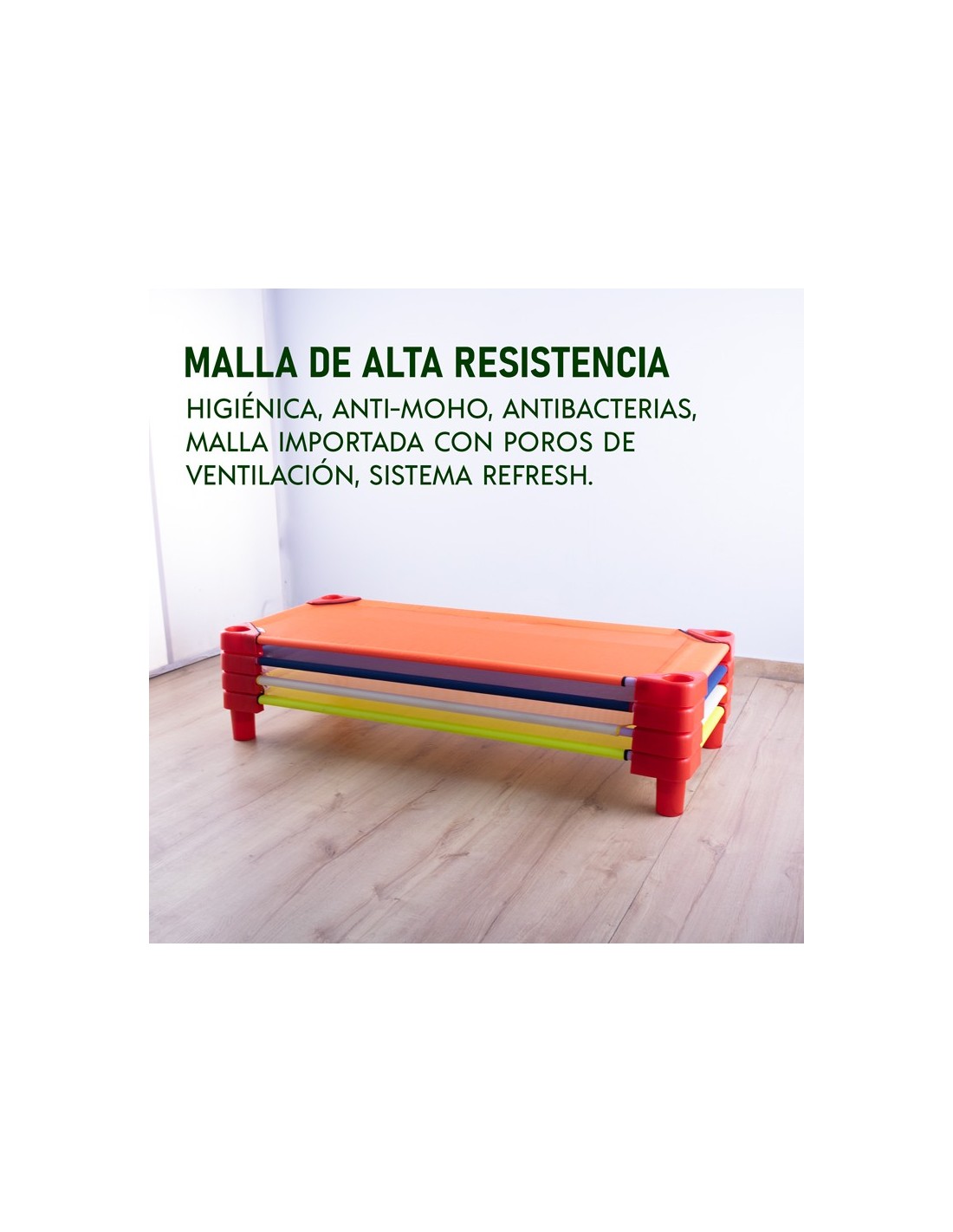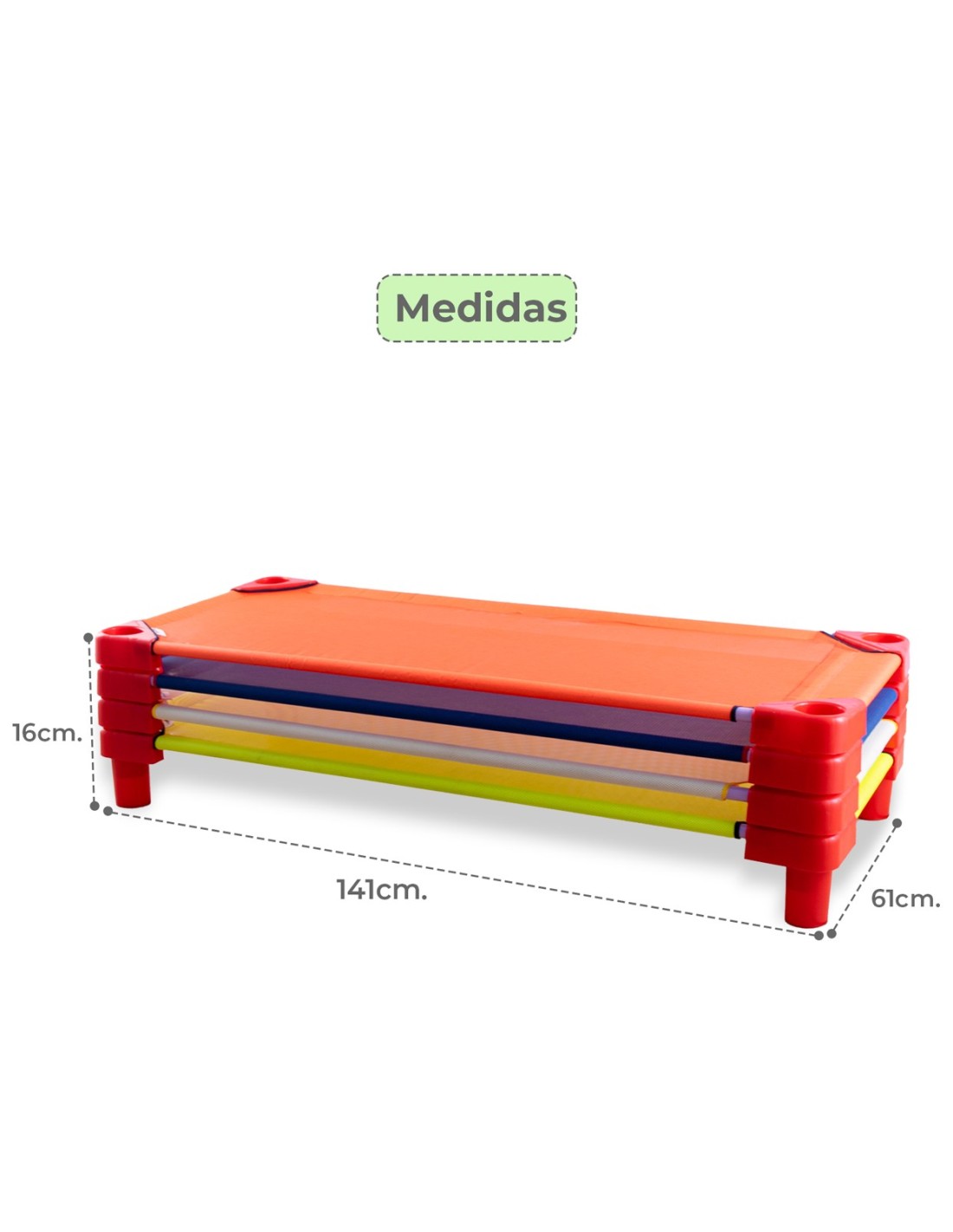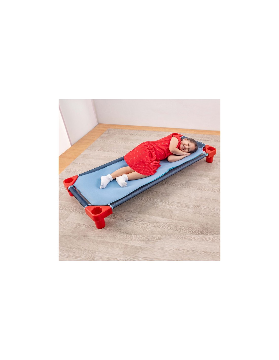 - Comodidad: La tela resistente proporciona un nivel básico de comodidad para el descanso de los niños, y las patas de plástico elevan la cama del suelo, ayudando a mejorar la ventilación y la sensación térmica.