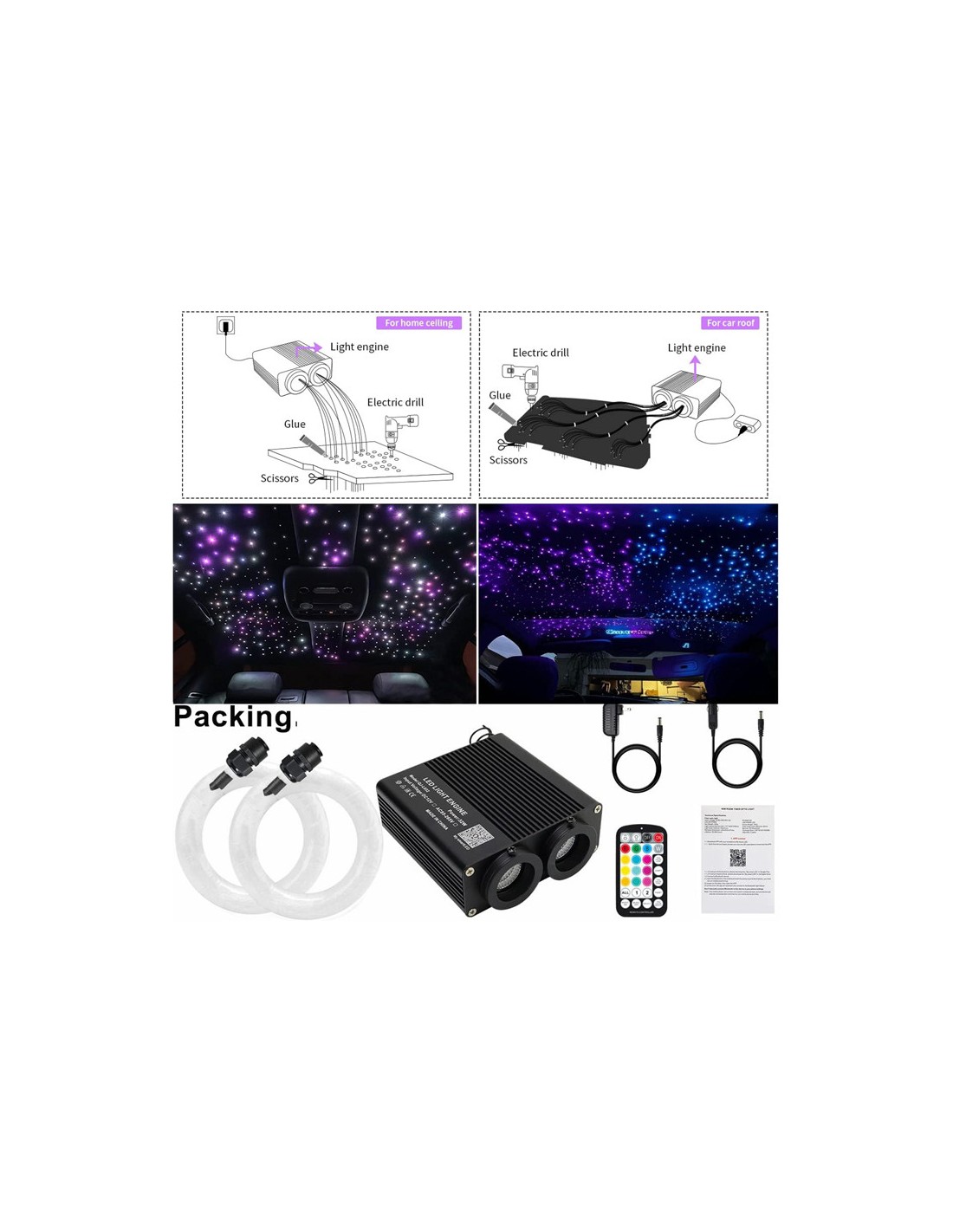 - Diseño de estrella de doble color: Ideal para crear ambientes envolventes en techos.