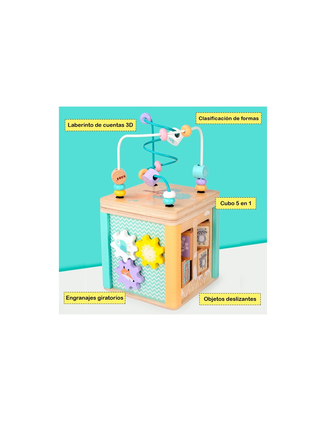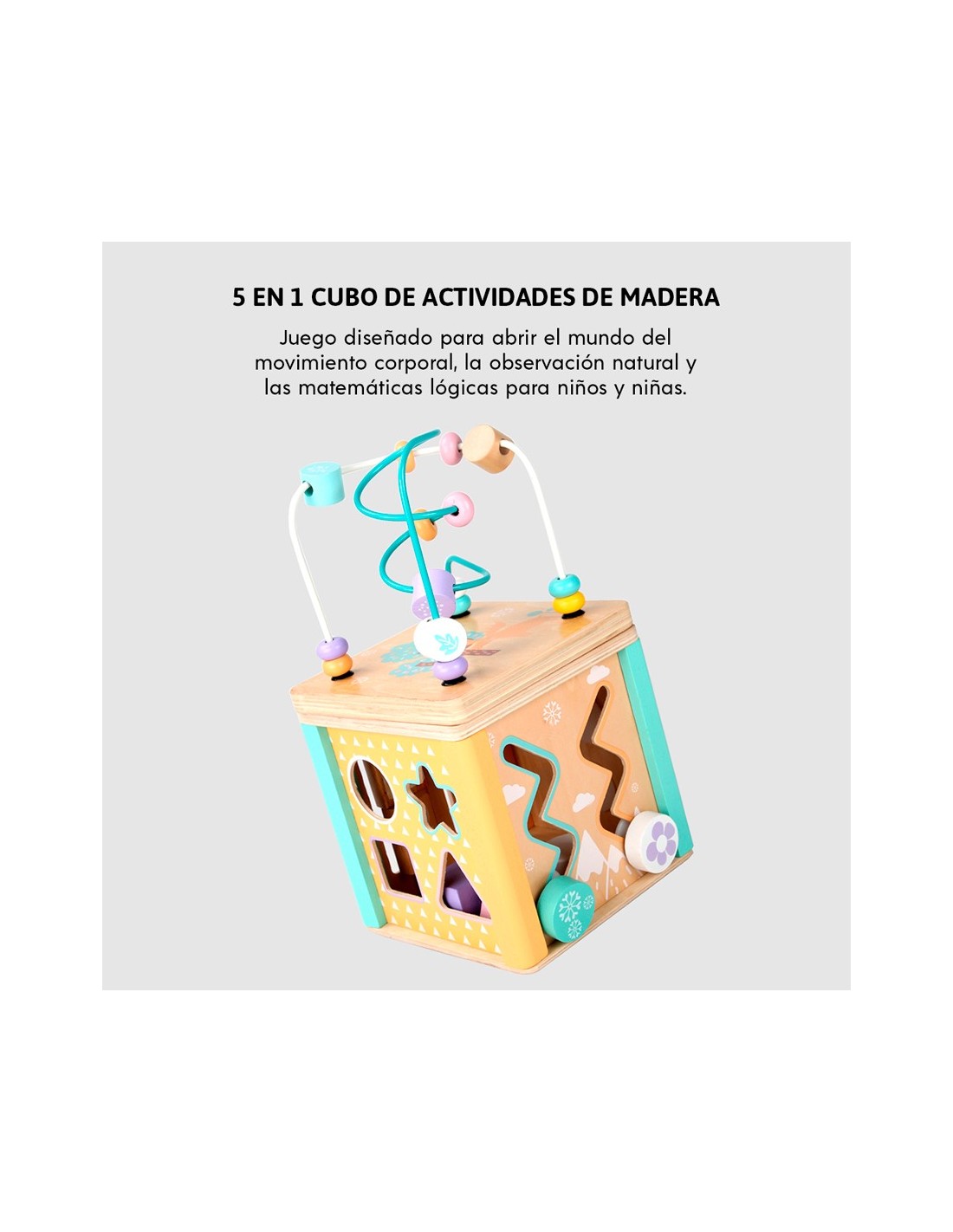 - El juguete de cubo 5 actividades: ha pasado los más altos estándares de seguridad. La artesanía superior y construcción robusta hacen que el cubo de actividades de madera sea una opción prioritaria para todas las edades, desde niños de 1 año hasta preescolares.