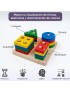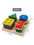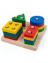 La base de madera tiene diferentes números de columnas de acuerdo con diferentes formas, los niños pueden combinar las formas geométricas con la columna en sus manos.