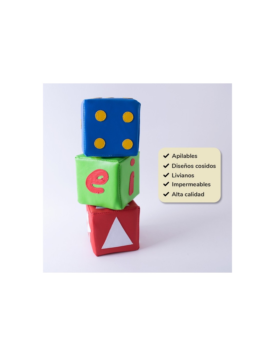 Dados suaves para niños: Juego de 3 dados de espuma suave para que los niños pequeños apilen y jueguen mientras exploran el movimiento, la coordinación mano-ojo y desarrollan importantes habilidades motoras. Son apilables fomentan el juego interactivo en las guarderías, preescolares, escuelas en el hogar y salas de juegos para niños. Los dados de colores brillantes animan a los más pequeños a identificar los colores, las figuras geométricas y los números. Estimulan la imaginación, la creatividad, la destreza y las habilidades de razonamiento espacial. Son suaves y livianos de espuma que permiten al niño armar, apilar. Desarrolla su imaginación, aumenta su creatividad, aprende conceptos de orientación espacial, colores. Sin cierres ni filos. fácil de limpiar, impermeable y alta calidad.