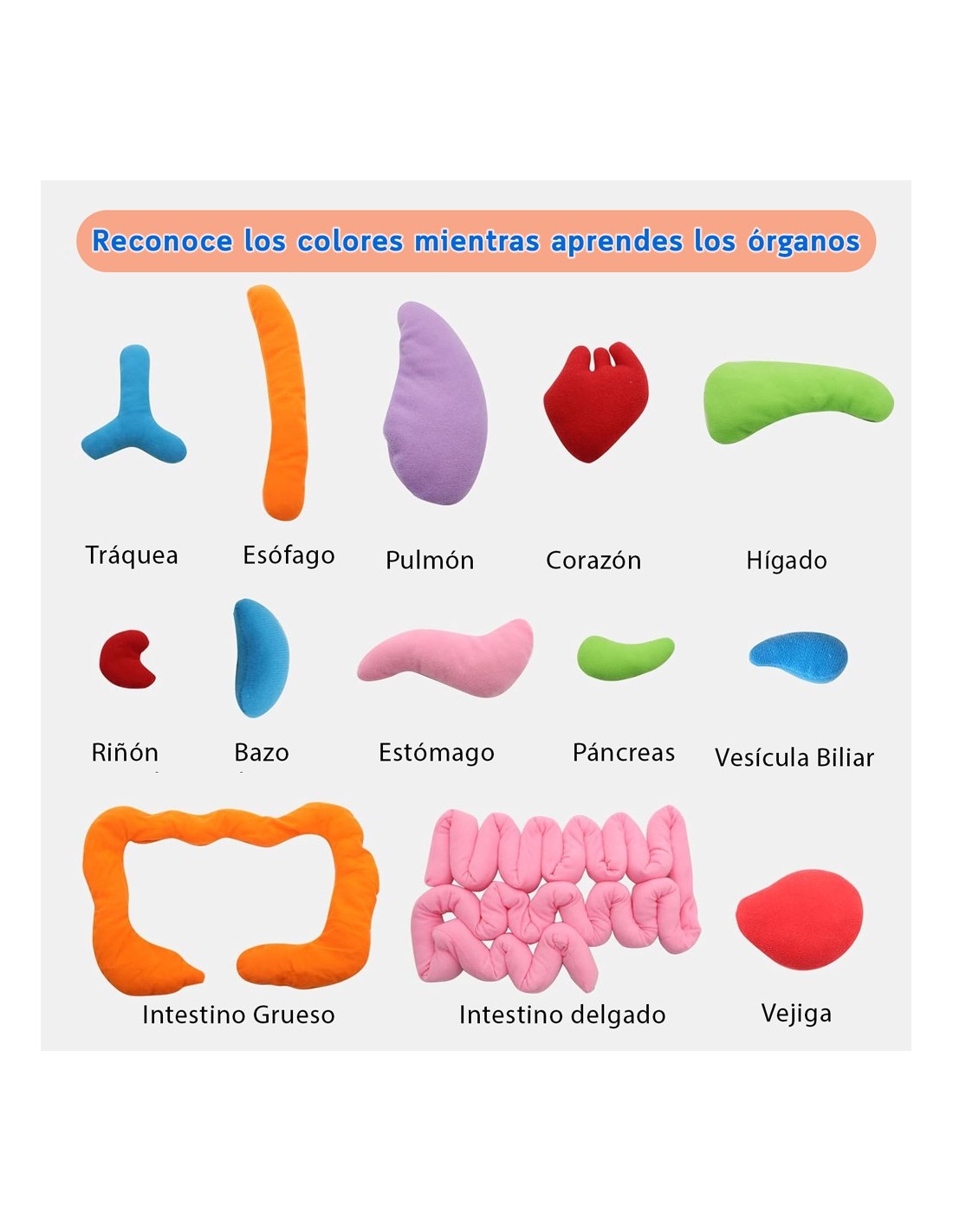 - Cada órgano está relleno de felpa y es extraíble, sujeto con velcro, lo que facilita su manejo durante las lecciones.
