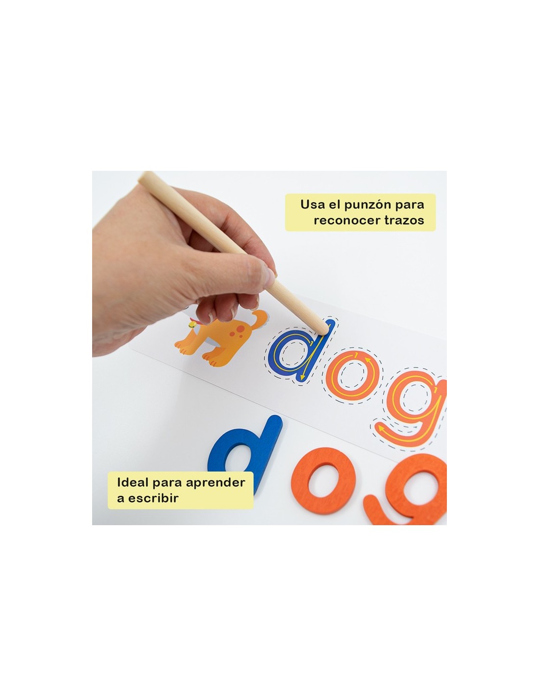 Con letras minúsculas de madera de colores brillantes para combinar, los niños pueden pasar horas concentrados y comprometidos con el aprendizaje. Utilizamos madera natural lisa y elegimos pintura no tóxica en todos nuestros productos.