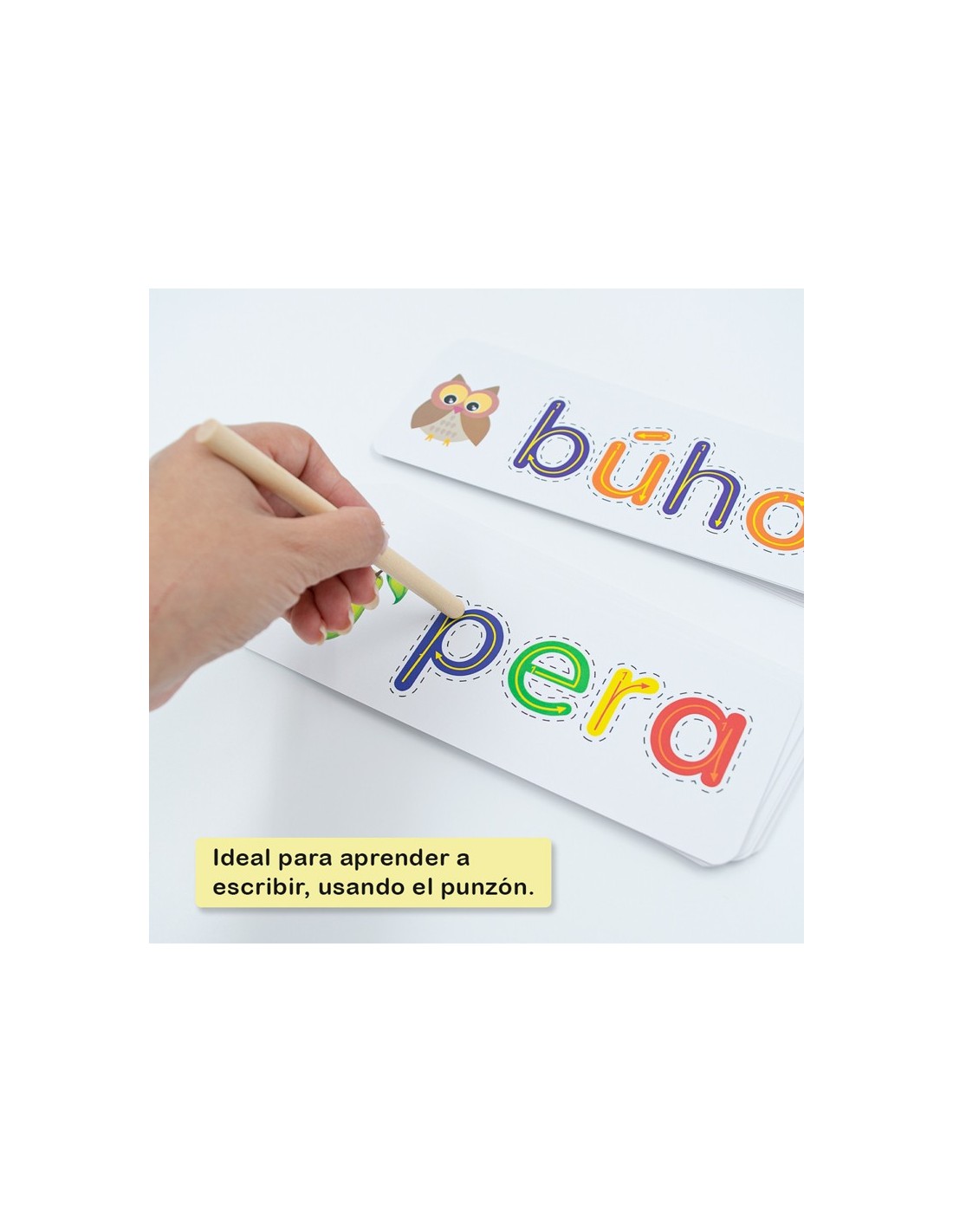 Las 63 cartillas en español e inglés también se pueden usar solas para los niños más pequeños y nuestras letras de madera se pueden usar en cualquier actividad del hogar.