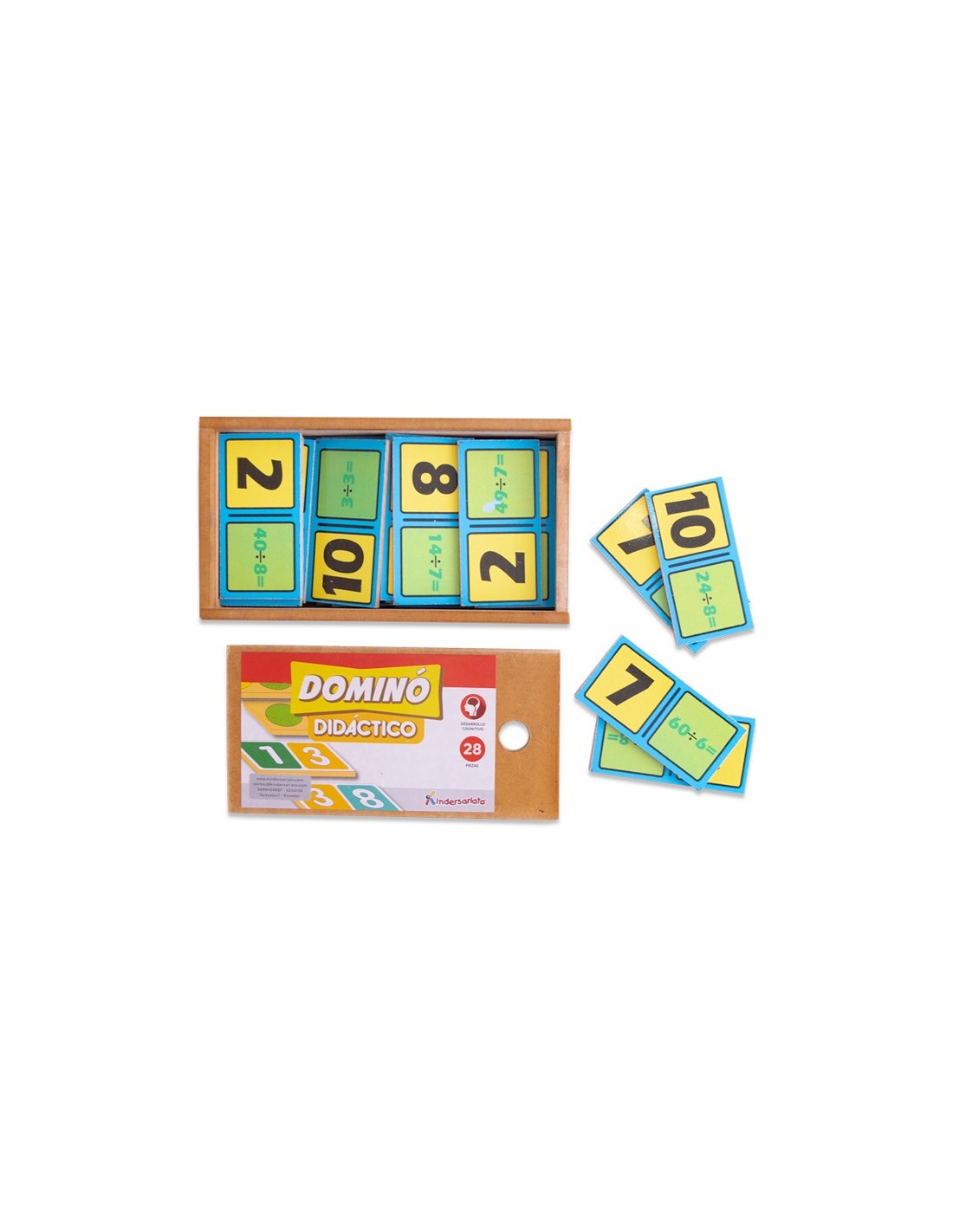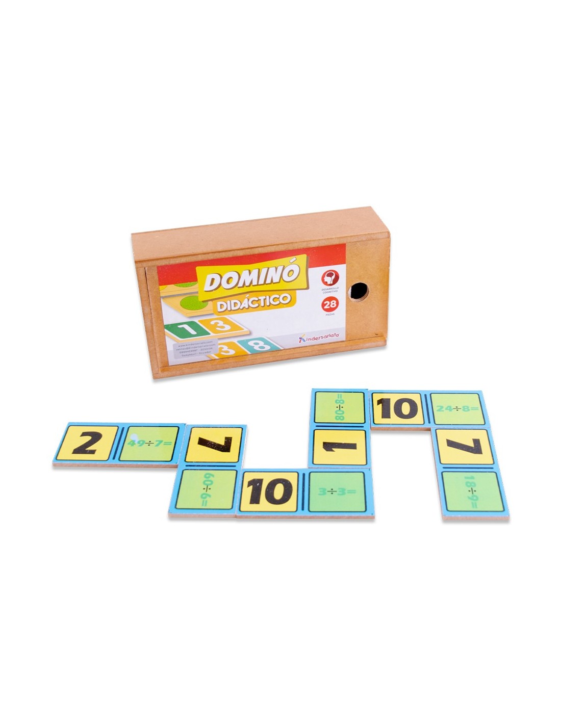 Dominó de División - Fichas y caja de madera