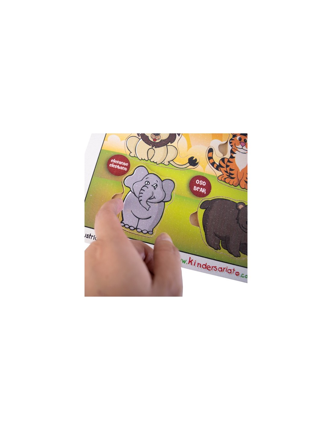 Puzzle encajable cuenta con 6 piezas de madera duradera y fácil de agarrar que muestran imágenes a todo color de animales de la selva. El diseño de las piezas de madera asegura que los niños puedan agarrarlas y negociarlas fácilmente. Este rompecabezas de aprendizaje para niños de Kindersariato está hecho con piezas que pueden levantarse para usarse como manipuladores o piezas de juego.