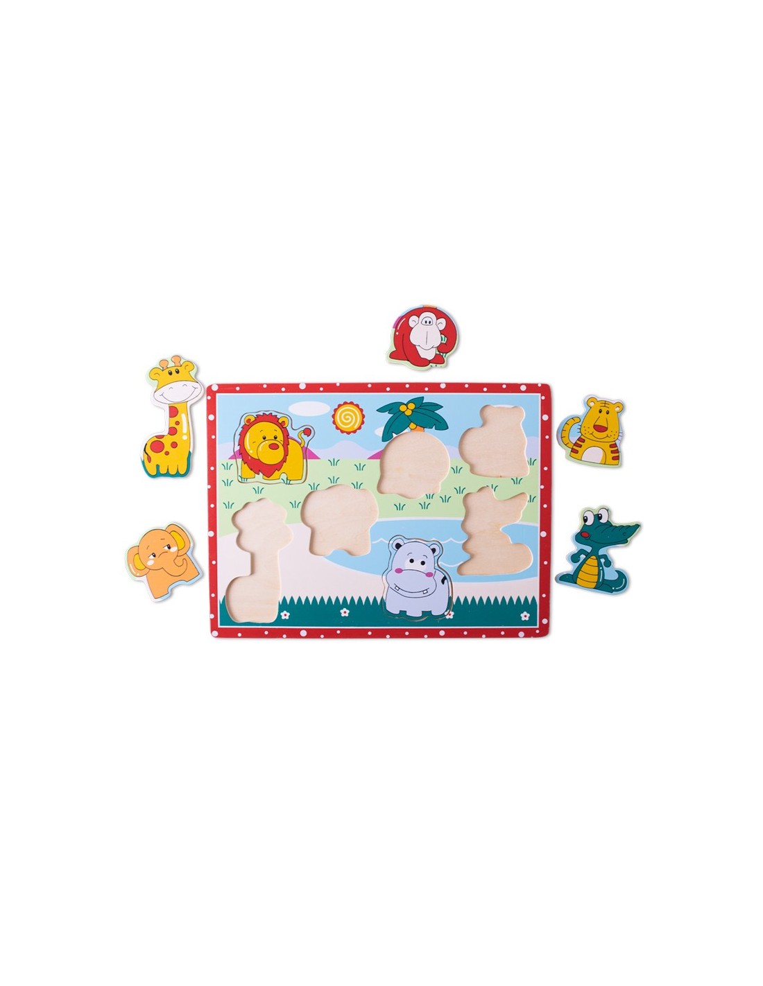 Puzzle cuenta con 7 piezas de madera duradera y fácil de agarrar que muestran imágenes a todo color de animales de la selva. El diseño de las piezas de madera asegura que los niños puedan agarrarlas y negociarlas fácilmente.
