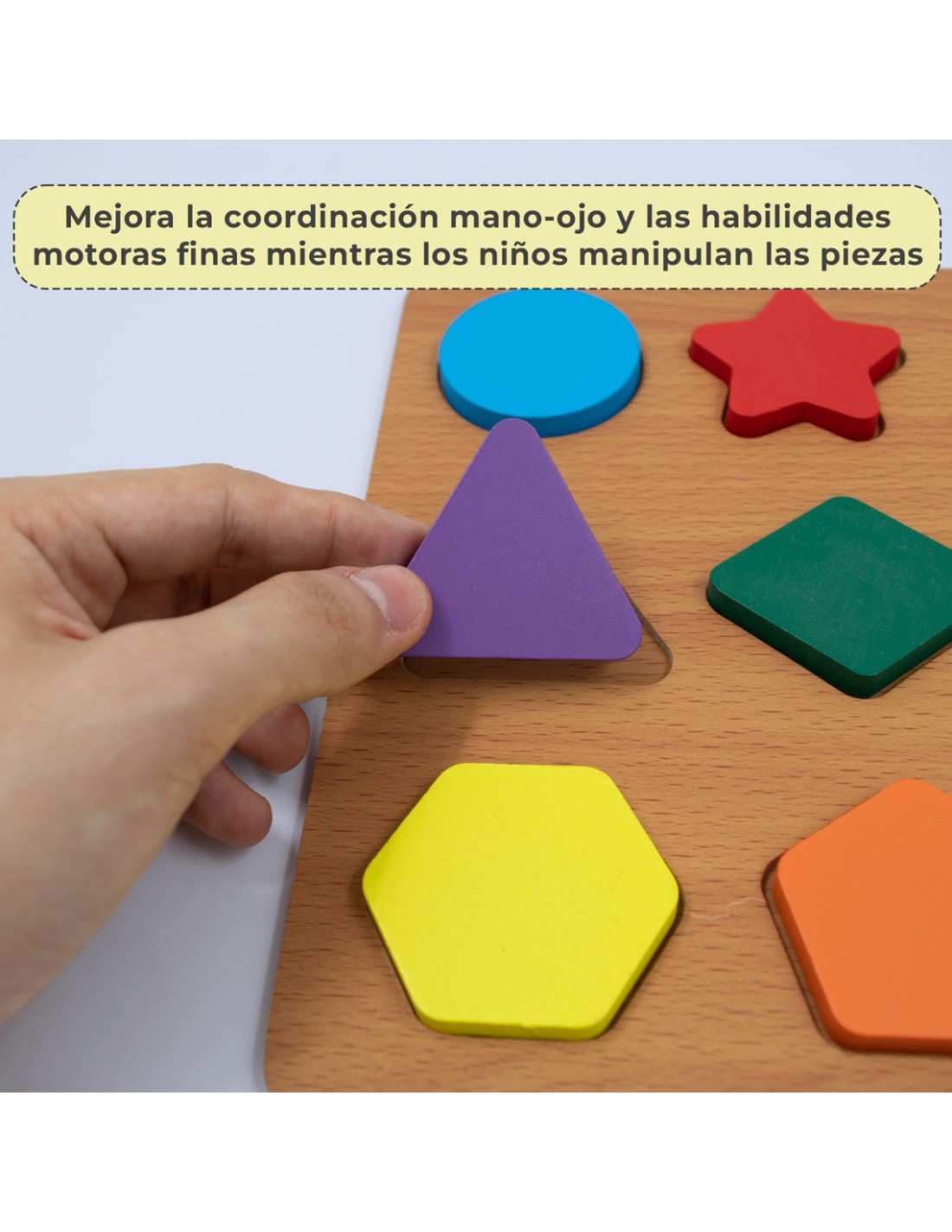 - Reconocimiento de formas: Los niños aprenden a identificar y distinguir entre diferentes formas geométricas mientras encajan las piezas en los espacios correspondientes.