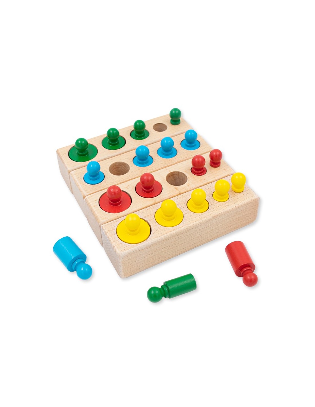 Discriminación de dimensiones: aísle la relación entre la dimensión y el volumen, haga coincidir el cilindro correcto con el espacio del bloque.