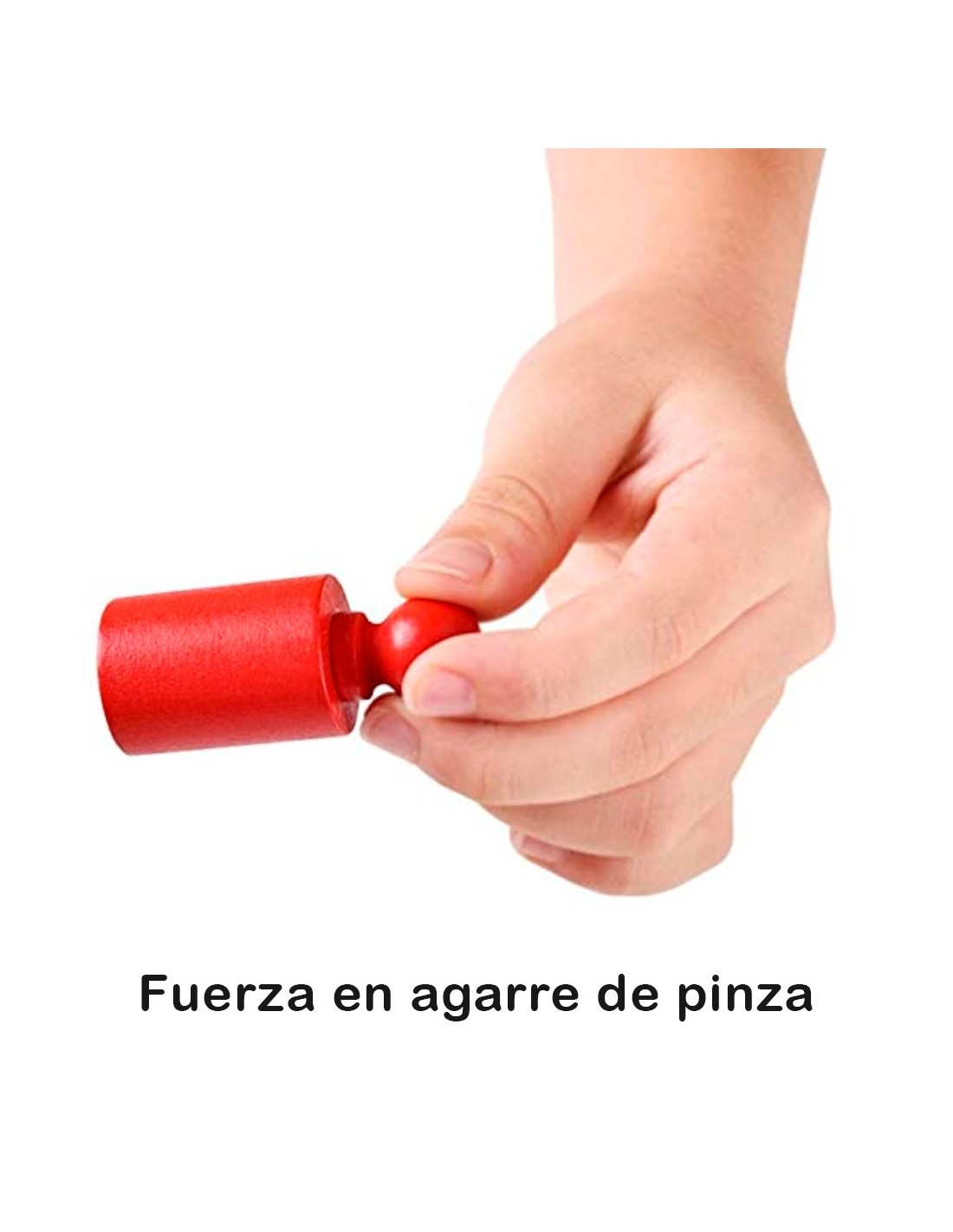 Desarrollo del agarre de pinza: le permite a su hijo esta habilidad motora fina esencial al sostener el cilindro entre el pulgar y los otros dedos.