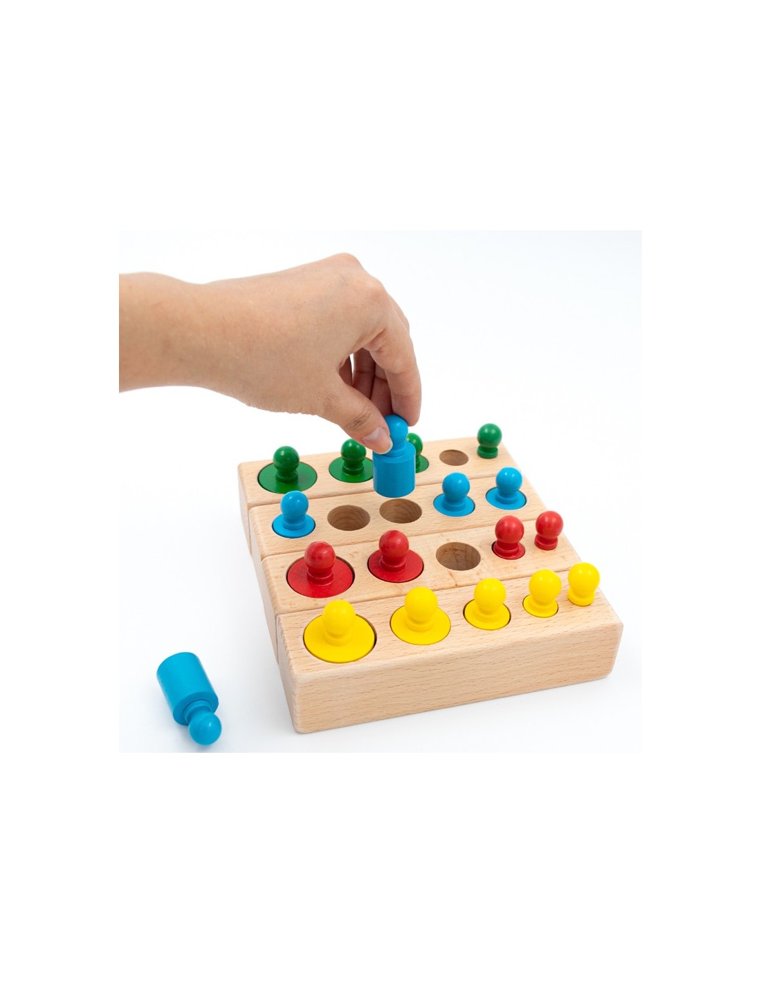 Terapia ocupacional: un gran juguete para mejorar las habilidades motoras finas, el razonamiento espacial y la coordinación manual, la destreza para niños y niñas pequeños mientras agarran el cilindro y combinan.