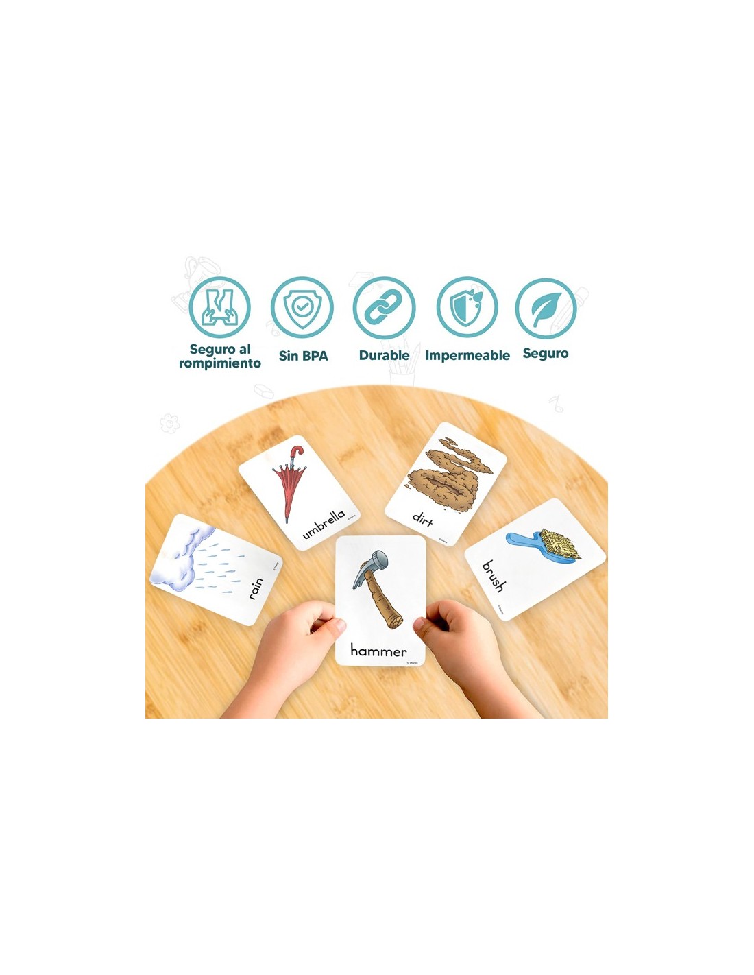 Nuestras tarjetas con bordes redondos tienen un tamaño perfecto para manos pequeñas. Agarrar y sostener las tarjetas da la oportunidad de desarrollar la fuerza y la destreza de la mano