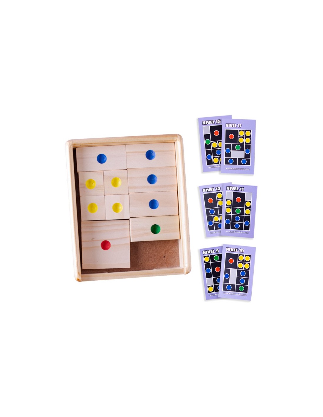 Recomendado para niños desde los 6 años en adelante. El juego consiste en sacar la ficha de punto rojo por la ranura. Contiene cartillas. Primero, se arma el juego con la cartilla. Movemos cuidadosamente las fichas hasta lograr sacar la ficha de punto rojo. Debes mover las otras fichas que obstaculizan el paso. Utiliza las cartillas por niveles de dificultad. Mientras menos fichas movamos para lograr nuestro objetivo, mejor.
