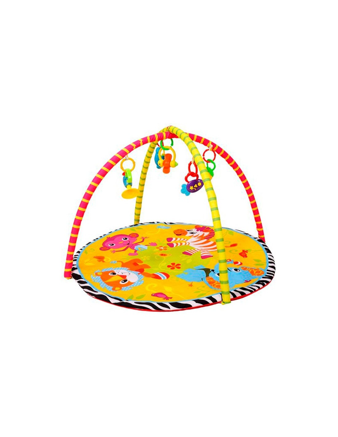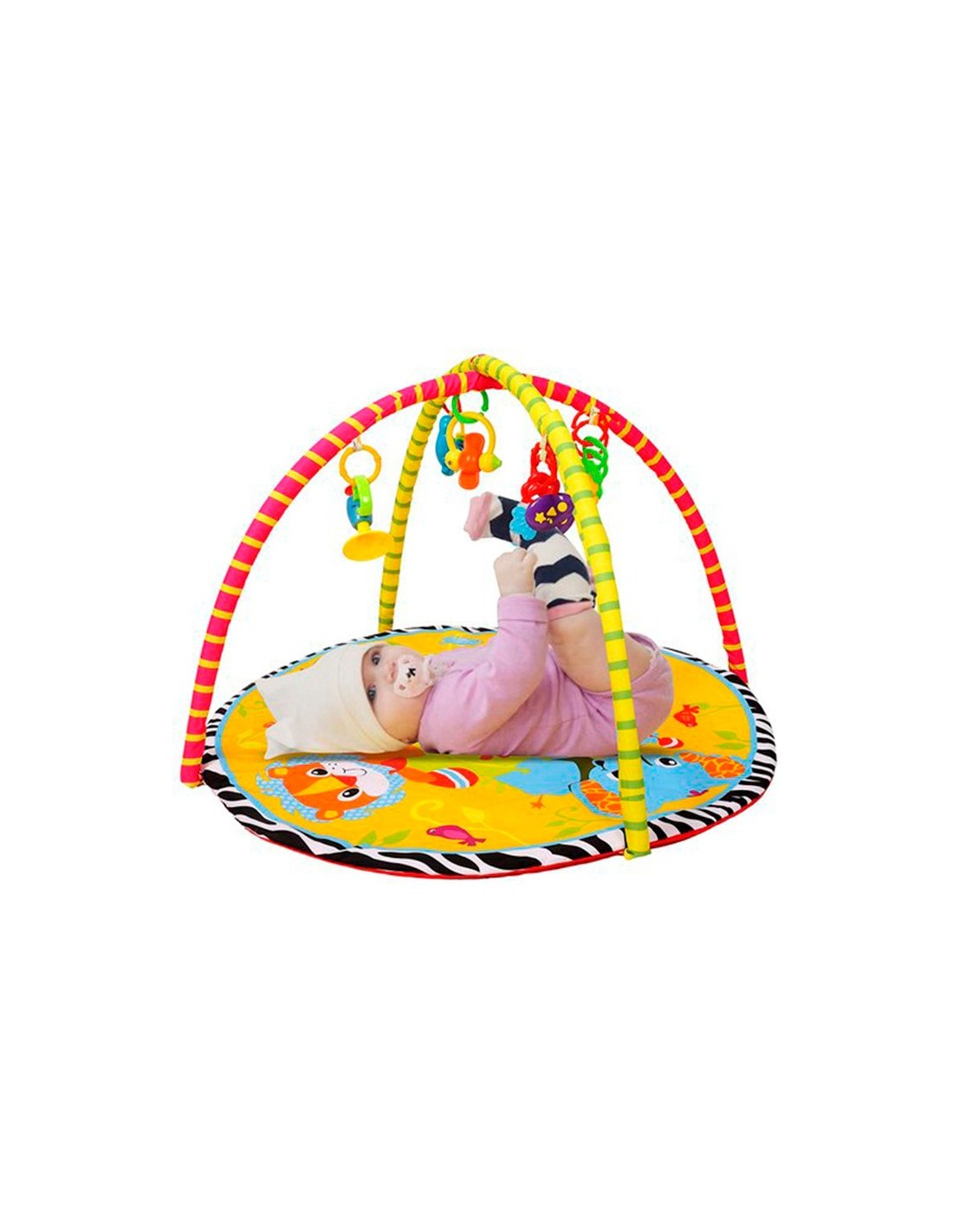 Relleno de colores brillantes y llamativos, este adorable gimnasio de juego cuenta con una suave alfombra circular con un centro de felpa para la comodidad del bebé.