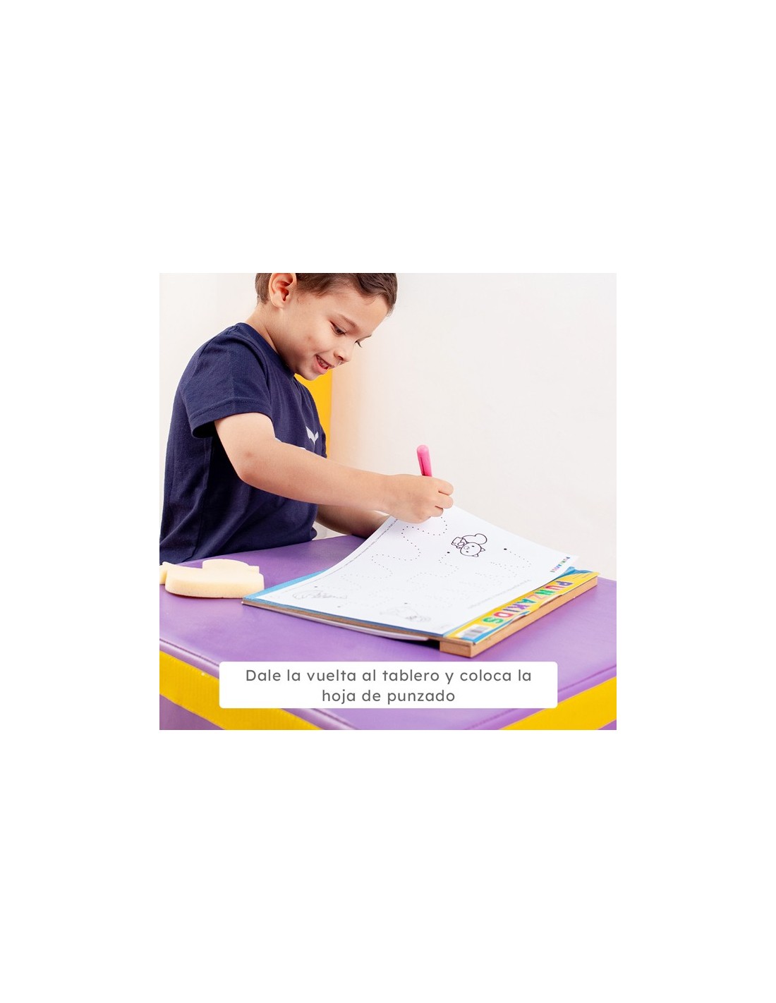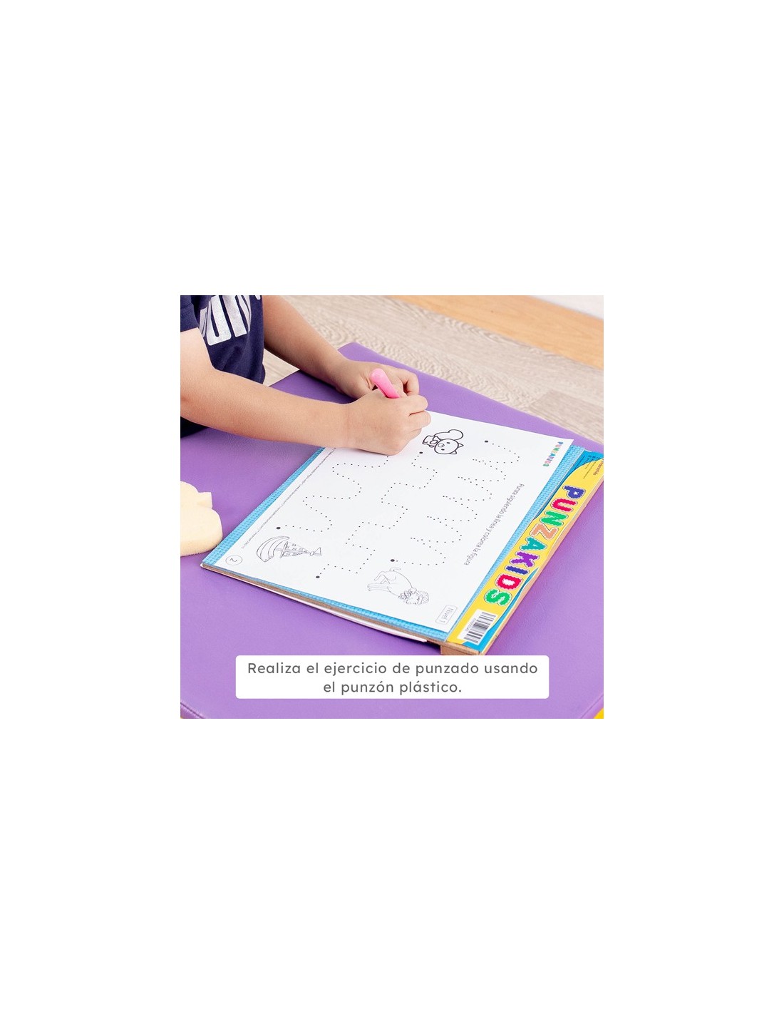 Tablero de trazos de pre-escritura con doble función. De un lado esta la pizarra para realizar los trazos de grafomotricidad y del otro lado está la base de punzado. Contiene: 1 marcador borrable, 1 punzón plástico, 1 borrador y 30 hojas reutilizables con actividades en diferentes niveles de dificultad. Incluye un bolso de empaque.