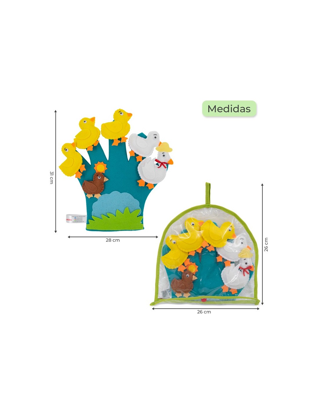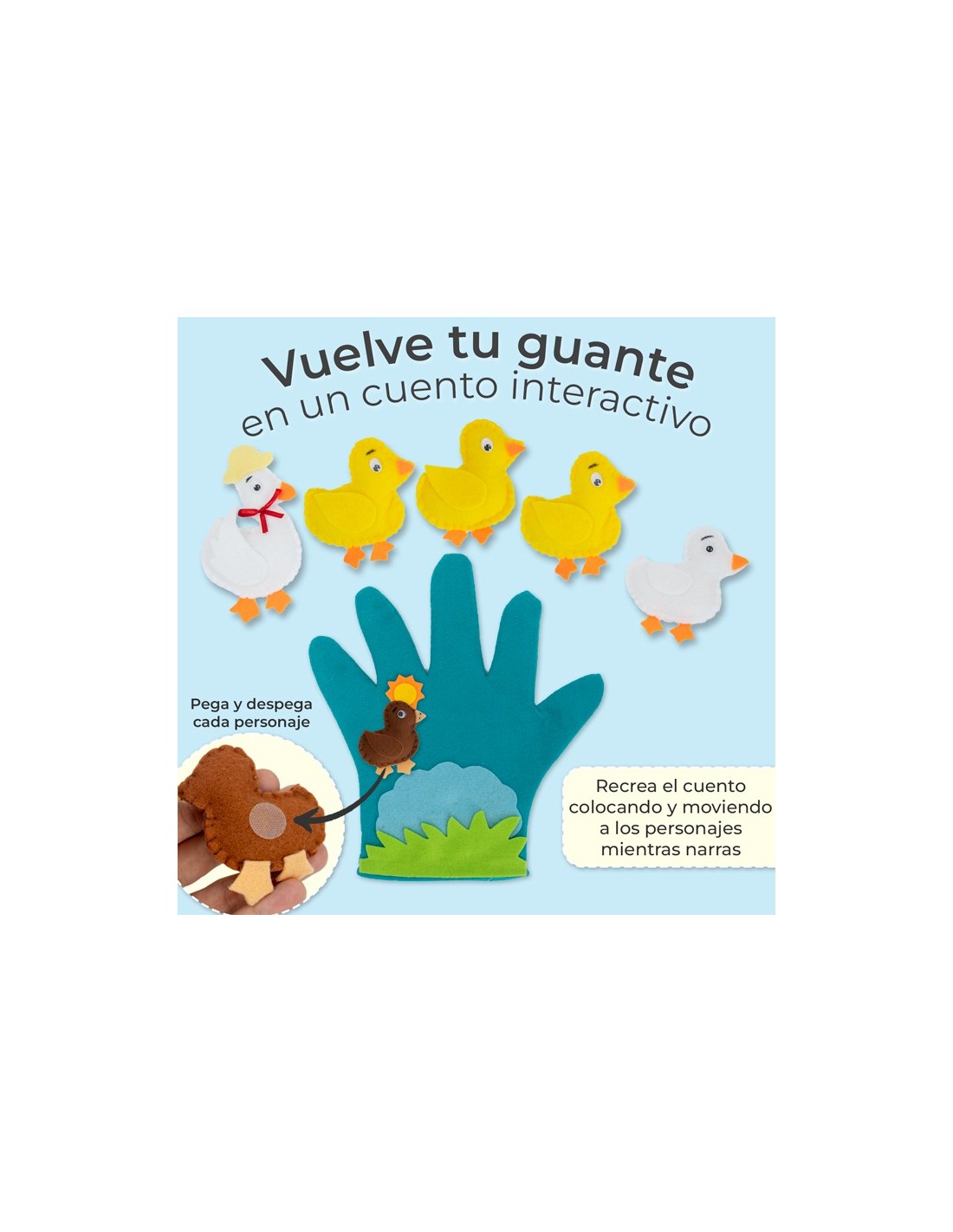 Los títeres sirven para desarrollar el lenguaje en los niños y niñas, además desarrollan el pensamiento creativo. Los títeres se caracterizan porque su movimiento depende de la mano del titiritero, además pega y despega a los personajes del guante para que puedas presentarlos durante la historia. Ideal para las habilidades de comunicación, la auto-confianza y el vínculo emocional padre-hijo. Acceso por la parte inferior del guante.