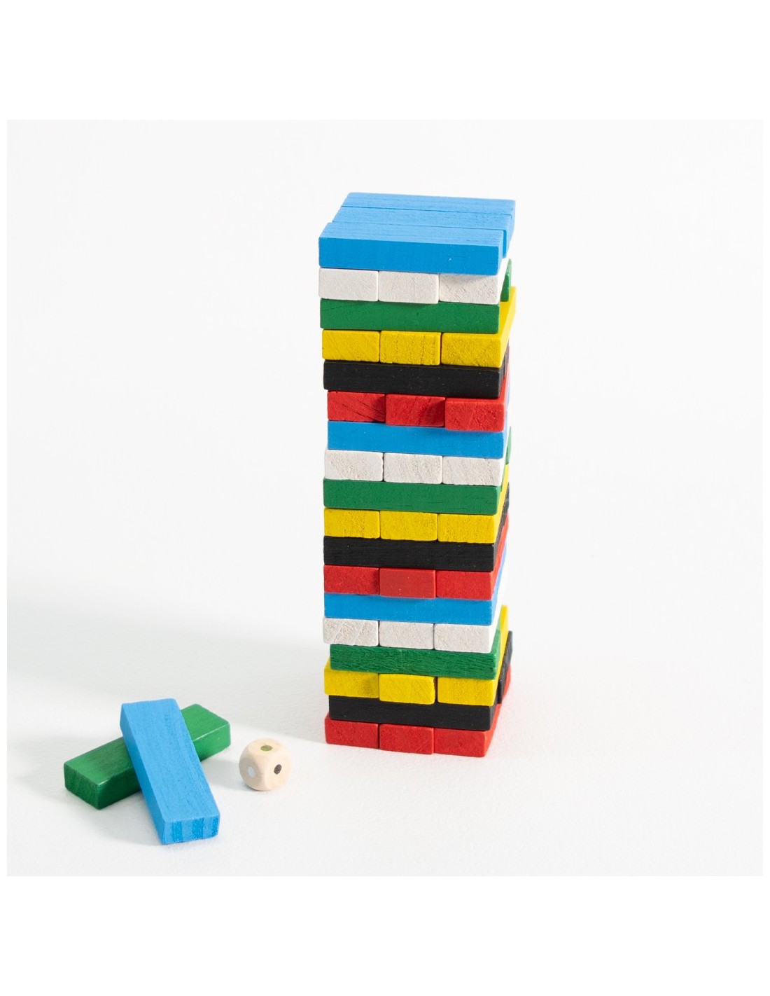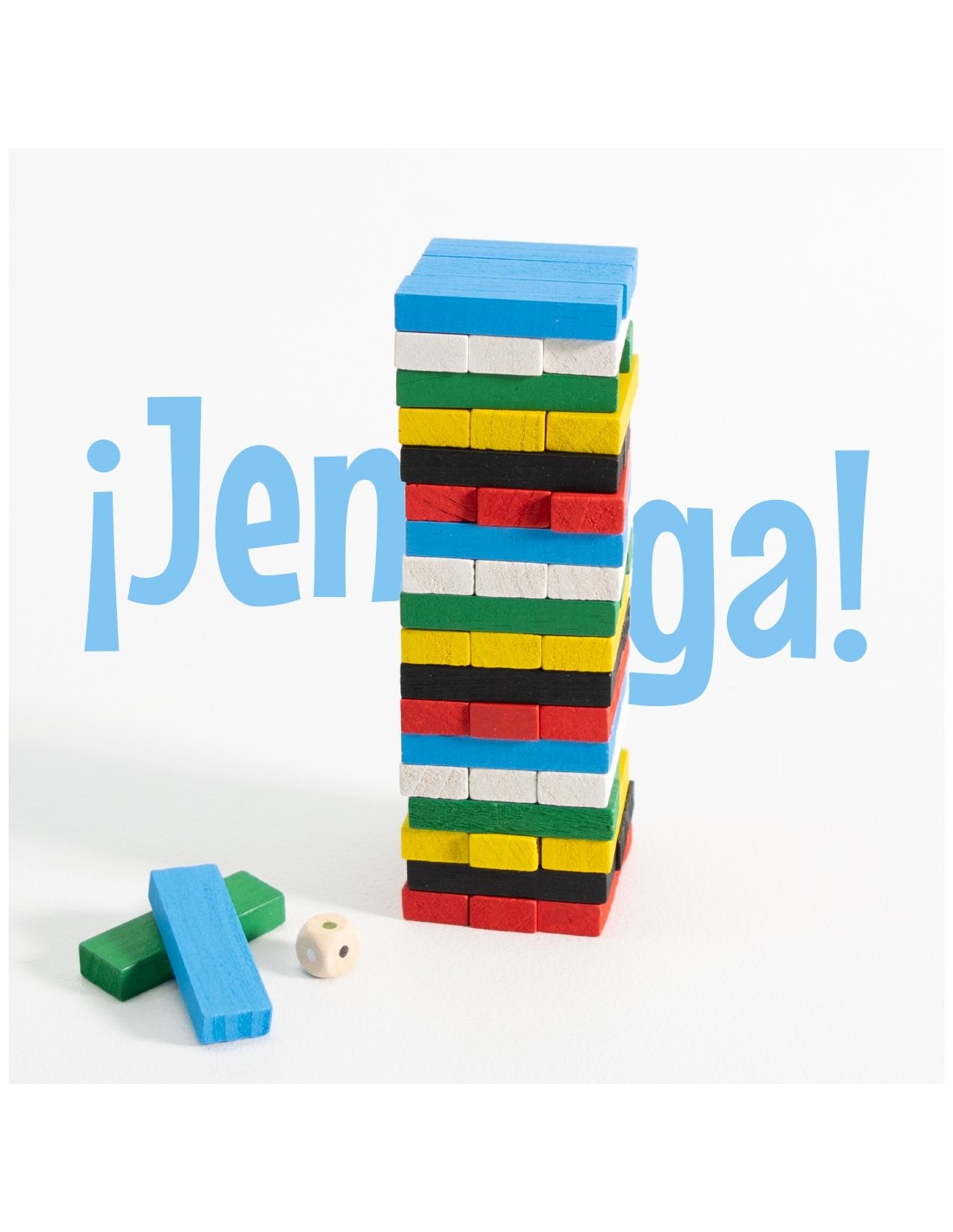 La Jenga es un juego de habilidad física y mental. Construido sobre la simple premisa de apilar bloques. Jenga involucra a jugadores de todas las edades, de todas las culturas. Los jugadores se turnan para retirar un bloque de una torre y equilibrarlo en la parte superior, creando una estructura más alta y cada vez más inestable a medida que avanza el juego.