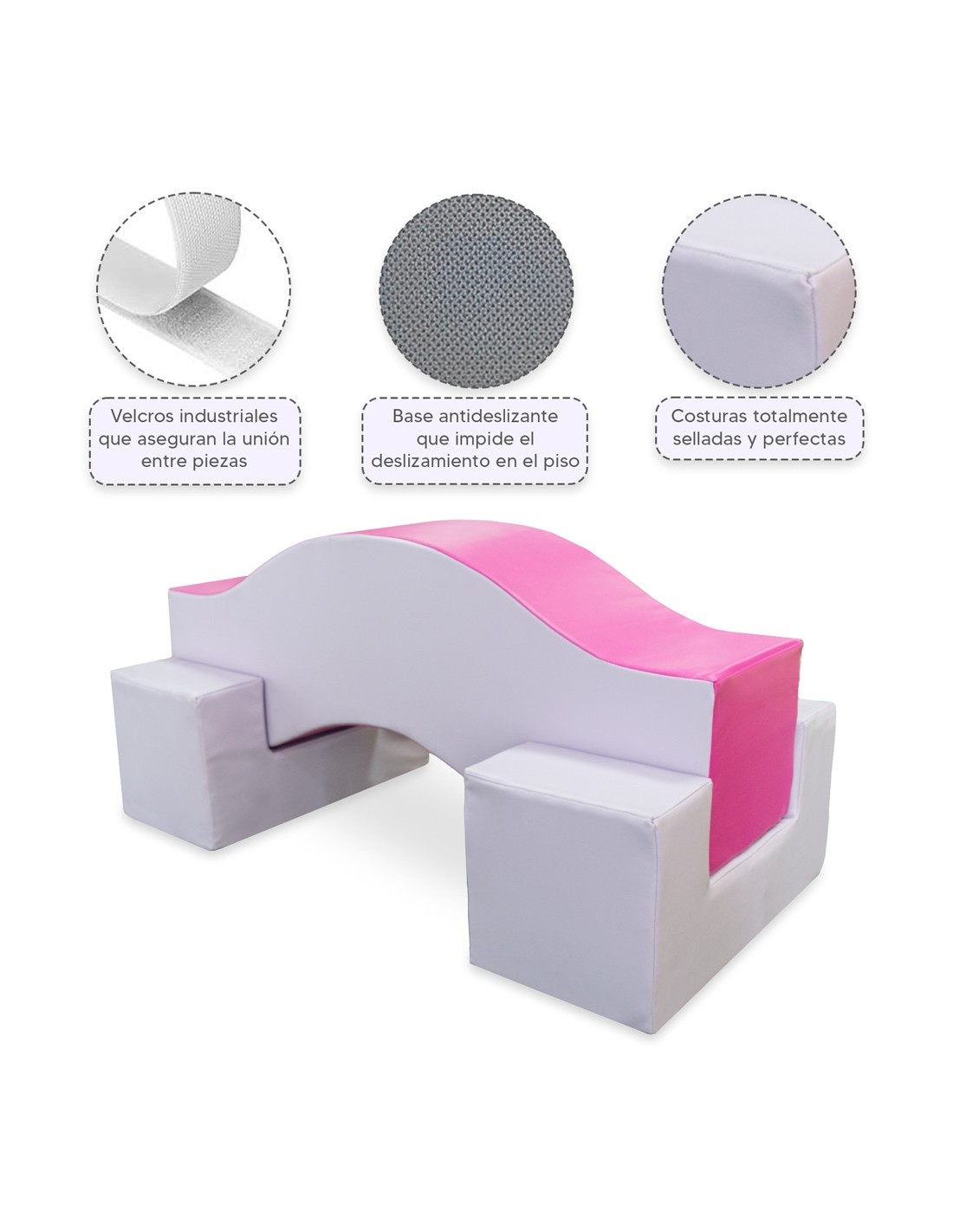 - Base antideslizante: la parte inferior antideslizante texturizada reduce el deslizamiento y el deslizamiento; incluye velcro para mantener las piezas juntas y en su sitio.