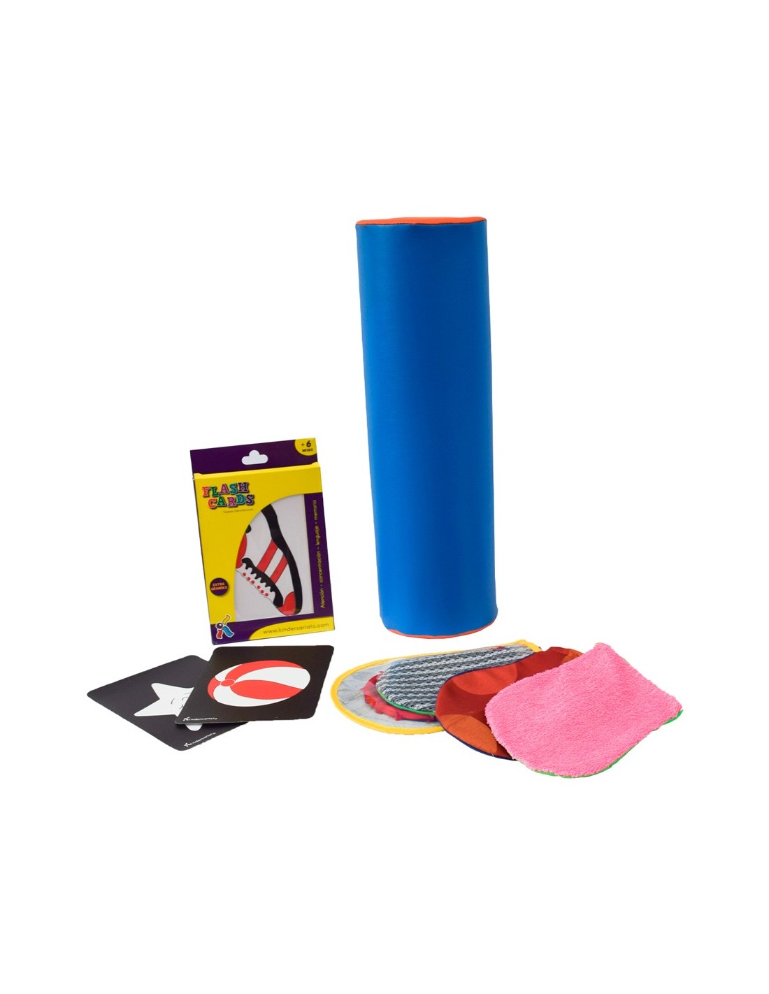 Kit para realizar actividades de estimulación temprana. Los implementos de este kit son necesarios en casa como material de apoyo. En pocos meses verás el progreso de tu bebé. Los guantes contienen 5 texturas para masajear a tu bebé. El rodillo es apoyo para realizar los ejercicios de gateo. Las tarjetas de observación visual en color blanco, rojo y negro, se debe a que ofrecen mayor contraste. Los bebés en temprana edad no reconocen los colores primarios, su visión aún se encuentra en desarrollo y maduración. Las tarjetas se muestran a una distancia de 25 cm.