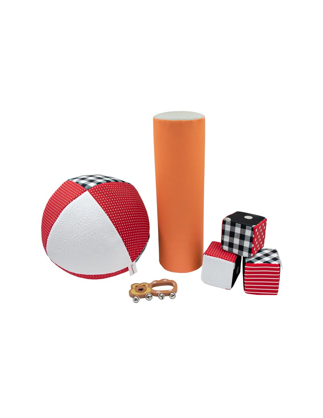 2. Balón sensorial: elaborado en tela suave, se utiliza para realizar los ejercicios de control cefálico, balance, equilibrio y reflejos. Con los ejercicios del balón sensorial se activan ciertas funciones del cerebro del bebé que ayudarán al progreso de su desarrollo.