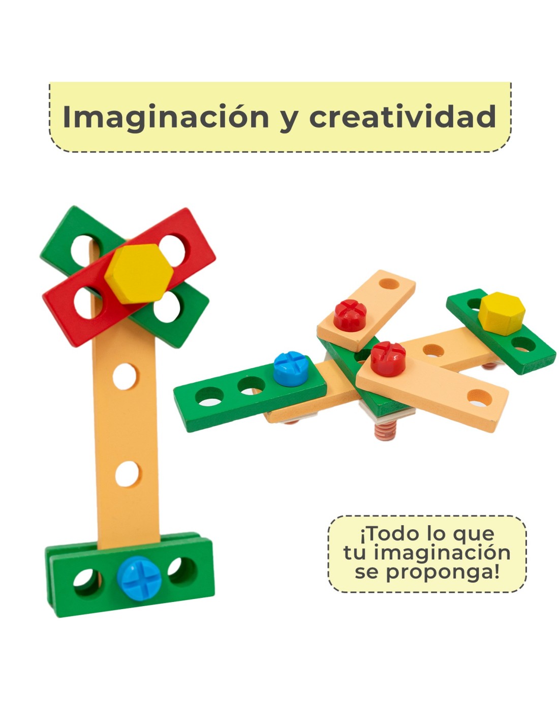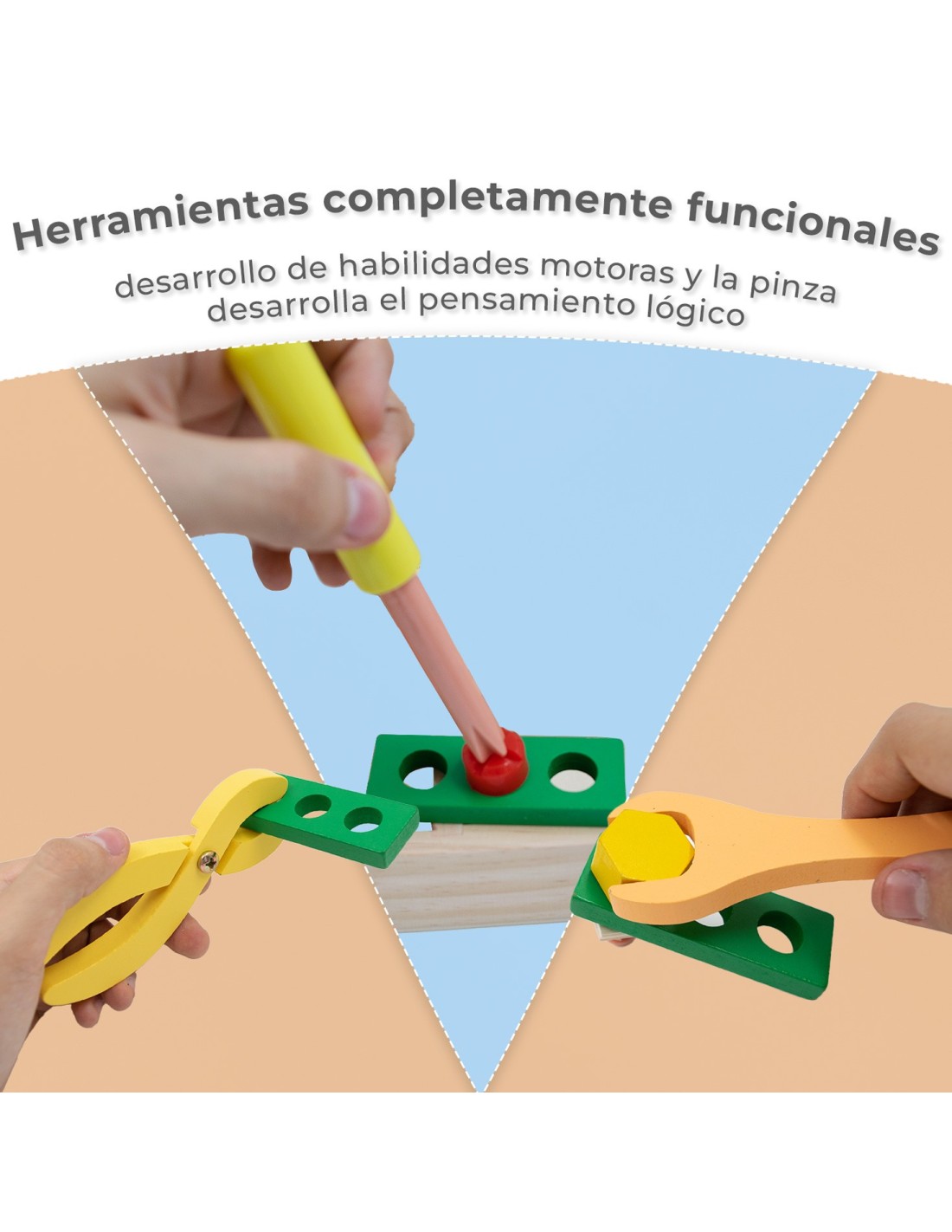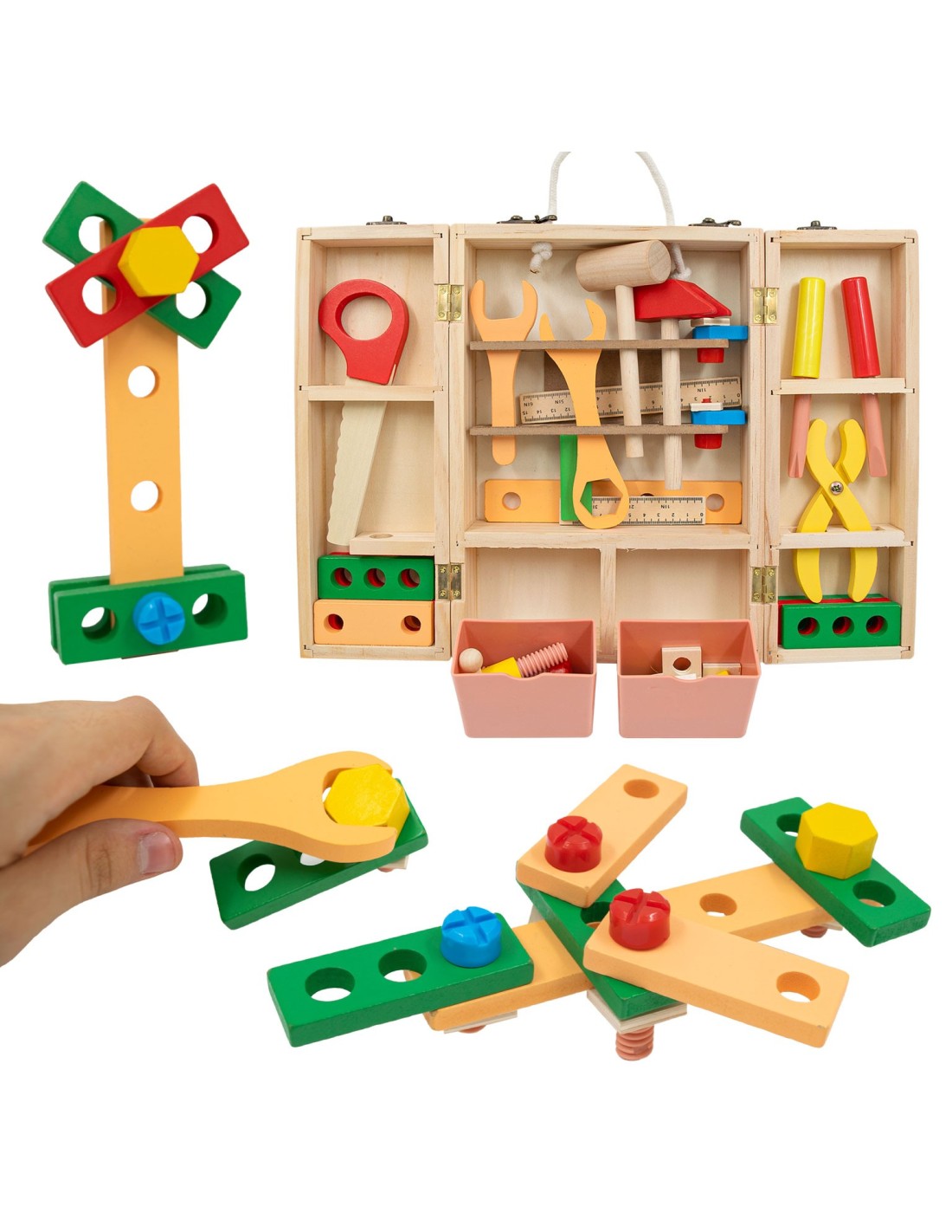 - El kit de herramientas de madera mantiene a tu hijo organizar bien sus herramientas, y con un asa en la parte superior, puedes llevarlo a todas partes.