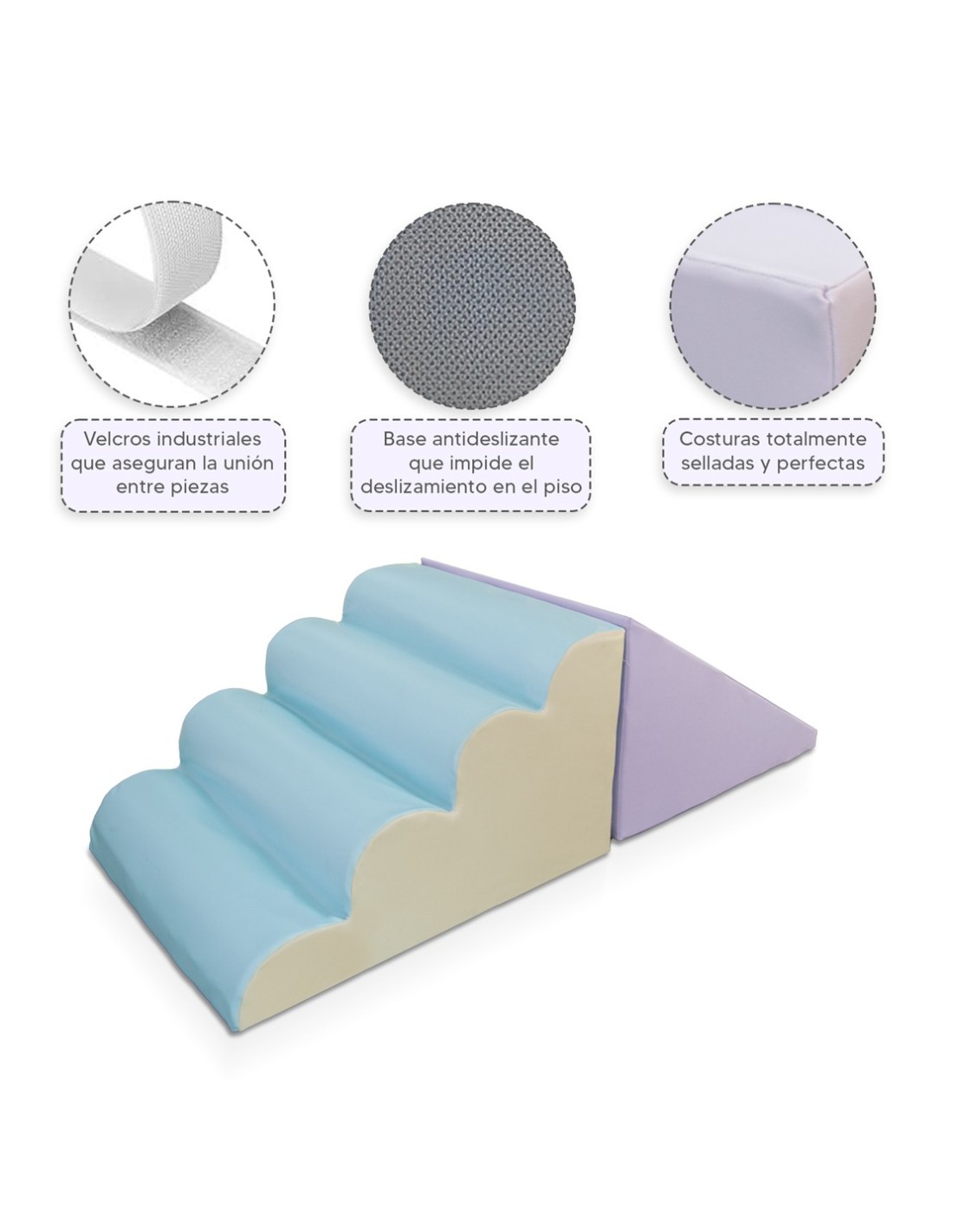 - Base antideslizante: la parte inferior antideslizante texturizada reduce el deslizamiento y el deslizamiento; incluye velcro para mantener las piezas juntas y en su sitio.
