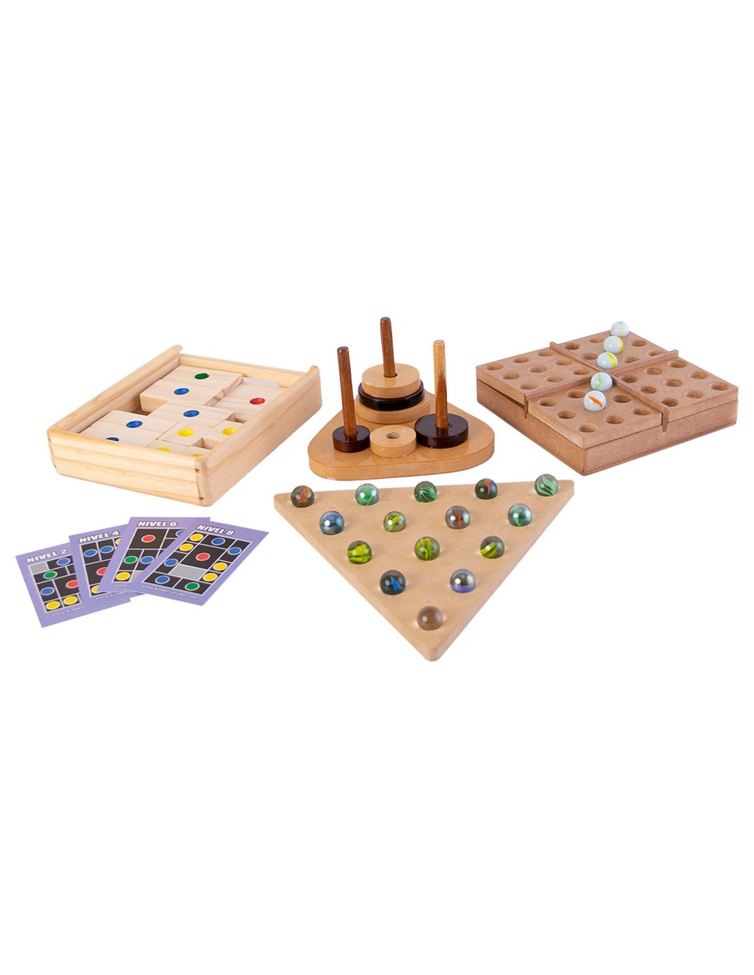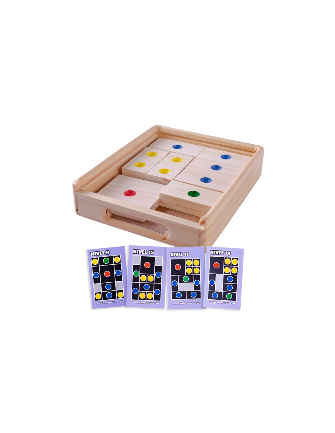 Juego de madera con cartillas de diferentes niveles, para desarrollar la destreza mental, la lógica y la estrategia. Recomendado para niños desde los 6 años en adelante. Exitoso juego de madera que fomenta la rapidez mental en los niños y adultos. El objetivo consiste en sacar la ficha de madera color rojo por la rendija. Pero primero debes mover las otras fichas que obstaculizan el paso. Utiliza las cartillas por niveles