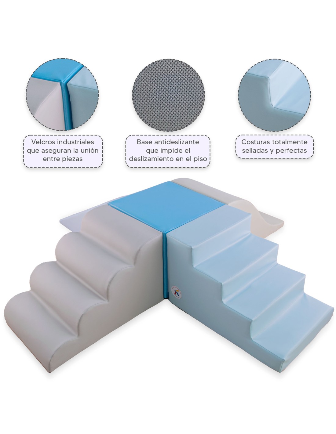- Base antideslizante: la parte inferior antideslizante texturizada reduce el deslizamiento y el deslizamiento; incluye velcro para mantener las piezas juntas y en su lugar.