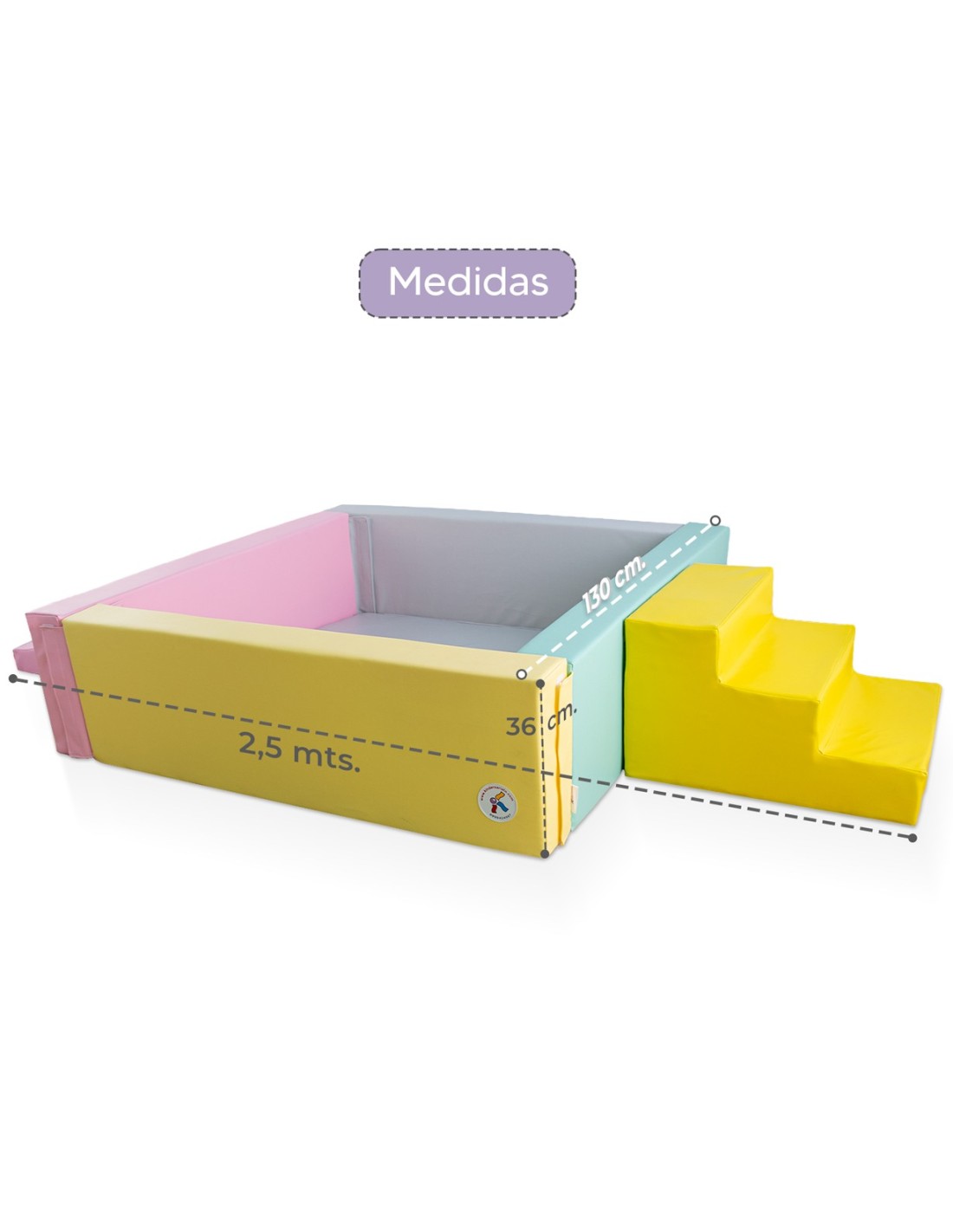 - Dimensiones: 250 x 130 cm. Alto:36 cm. Indicado para todas las edades.