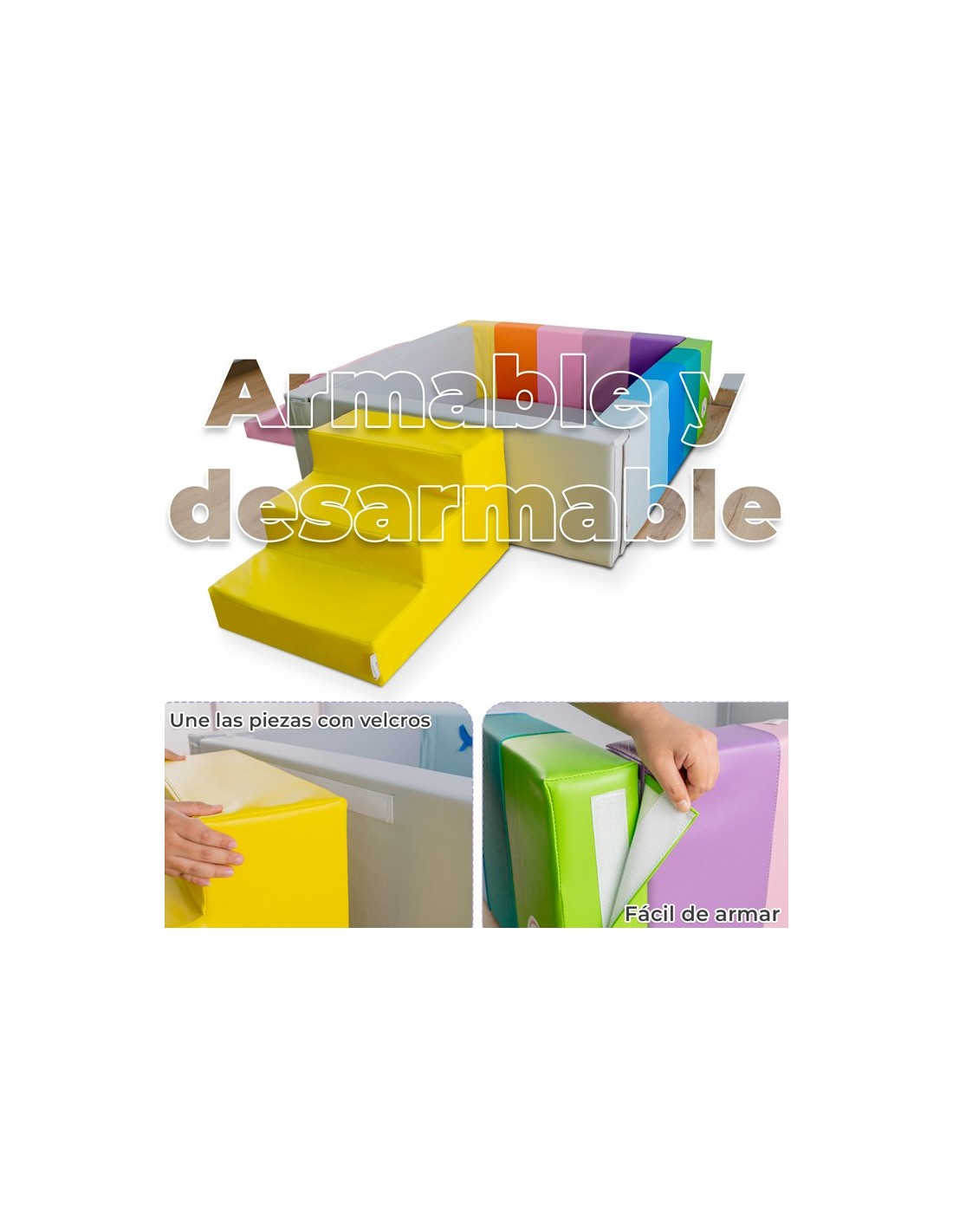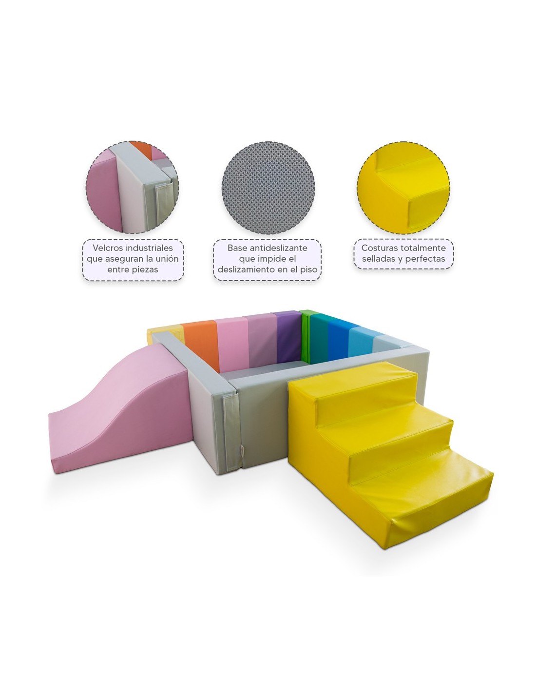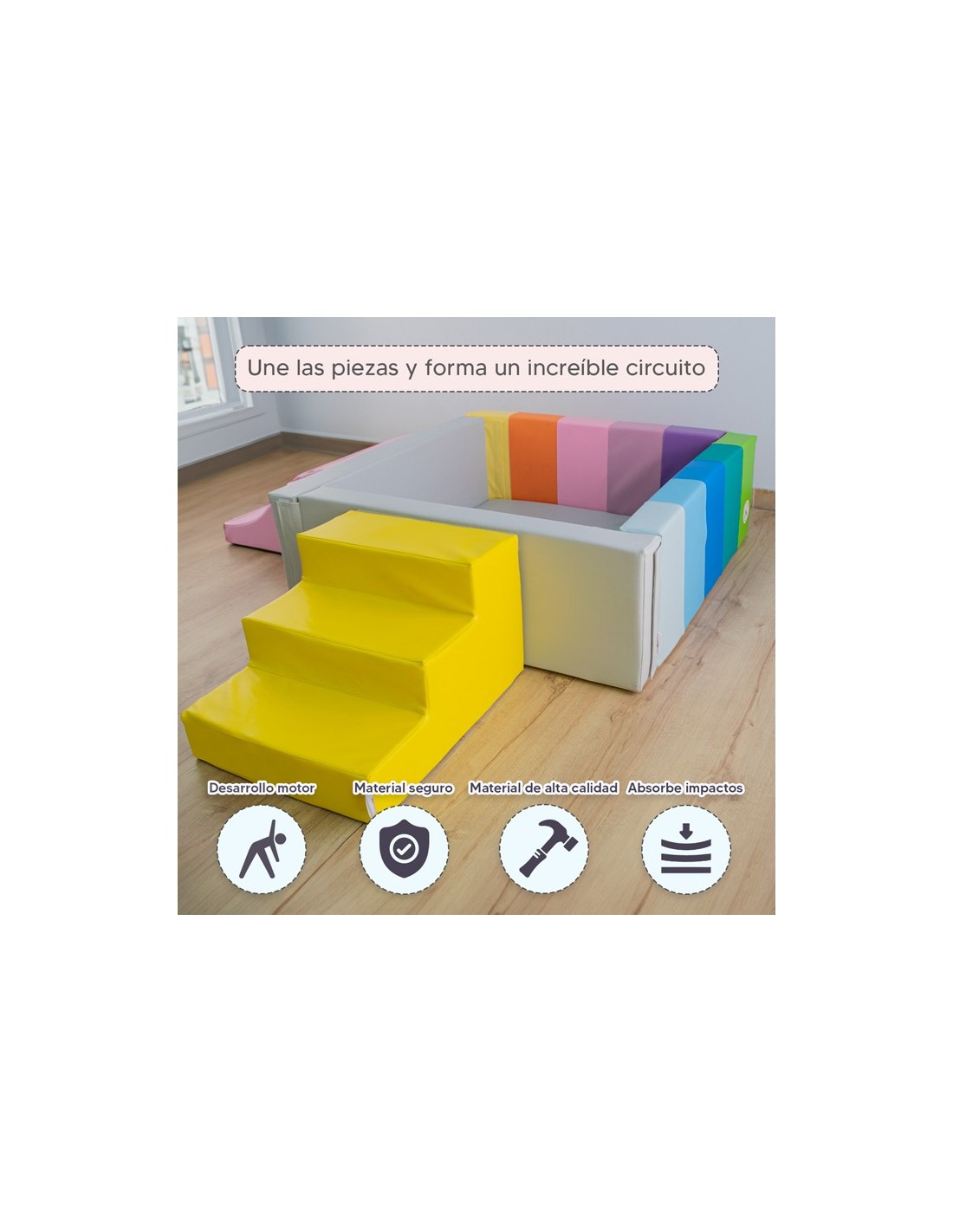 - El estímulo sensorial, visual y táctil construye habilidades motoras gruesas, enfoque y juego cooperativo.