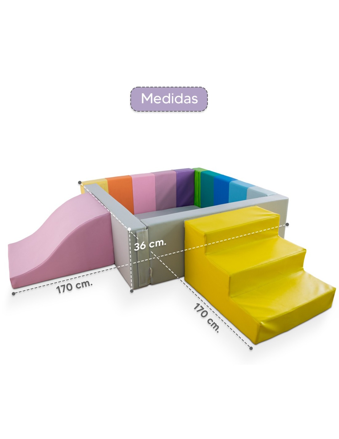- Dimensiones: 170 x 170 cm. Alto:36 cm. Indicado para todas las edades.