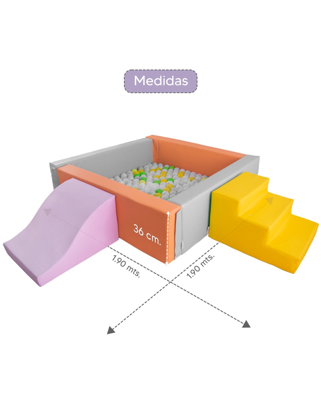 - Dimensiones: 190 x 190 cm. Alto:36 cm. Indicado para todas las edades.
