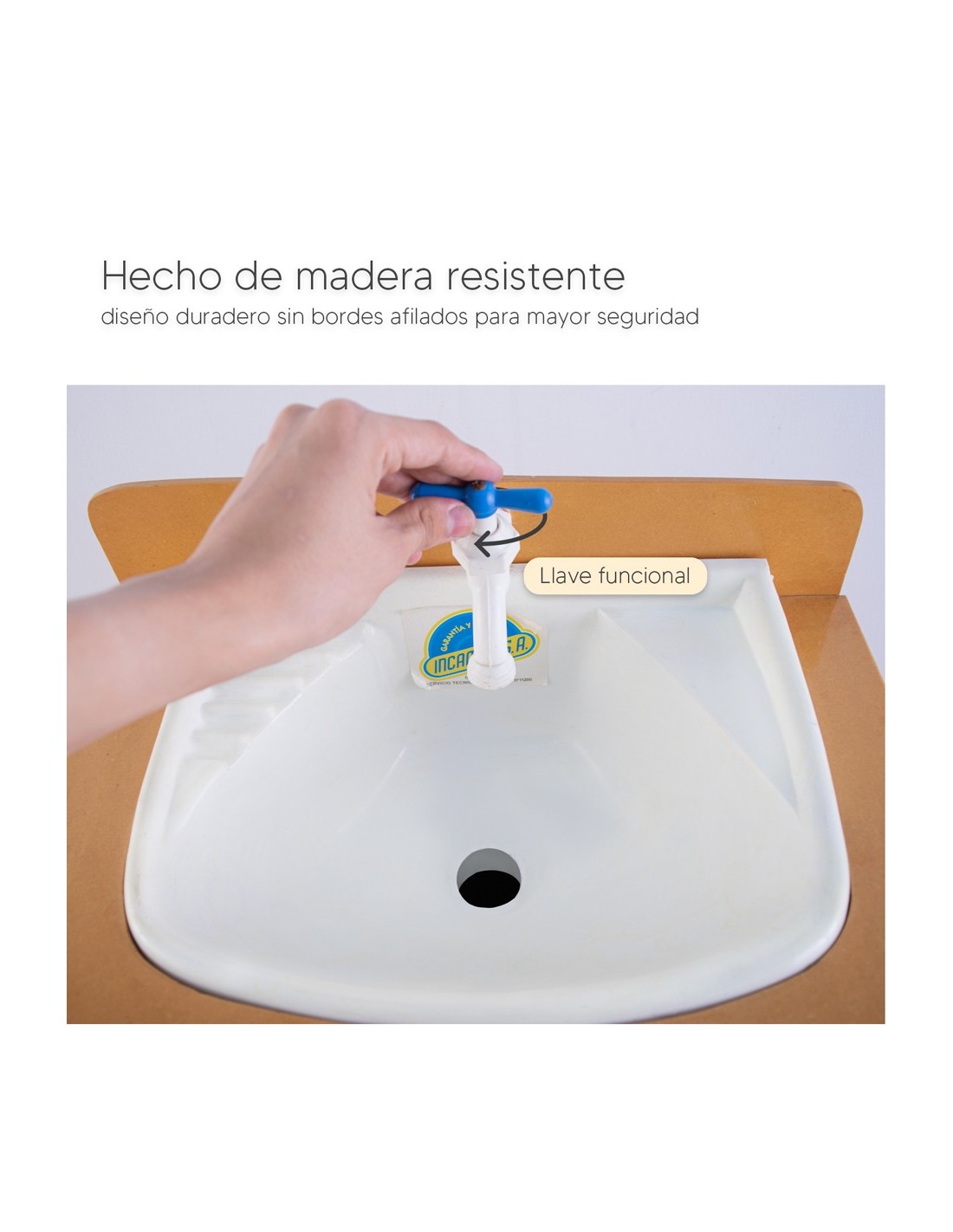 - Para que los niños puedan fingir que están lavándose las manos como si estuvieran utilizando uno real durante horas de diversión de juego de simulación.