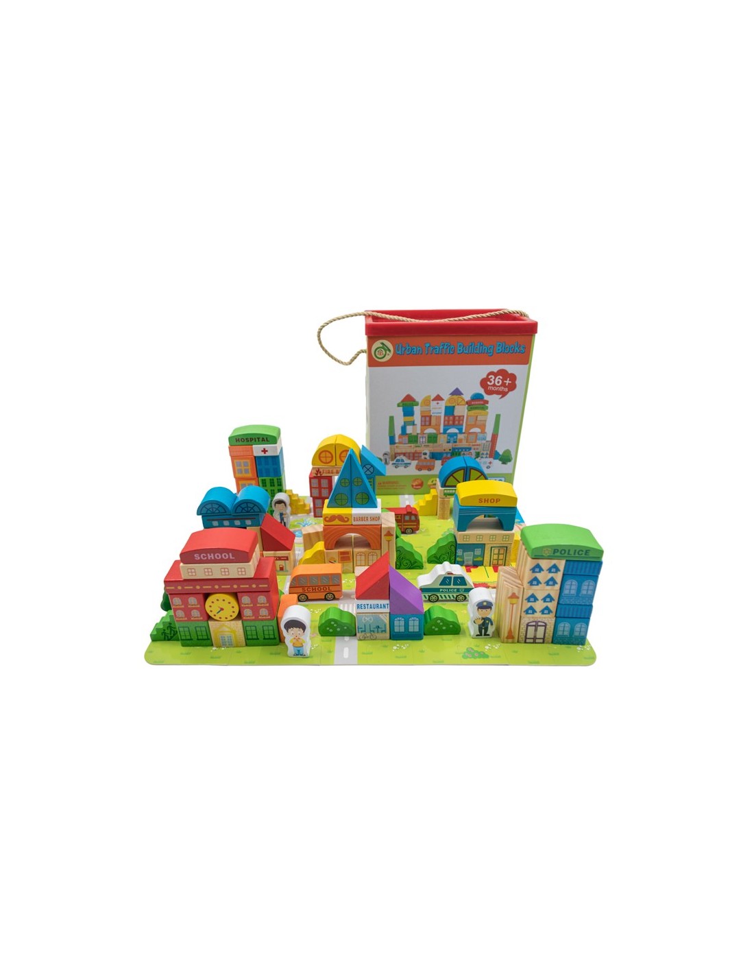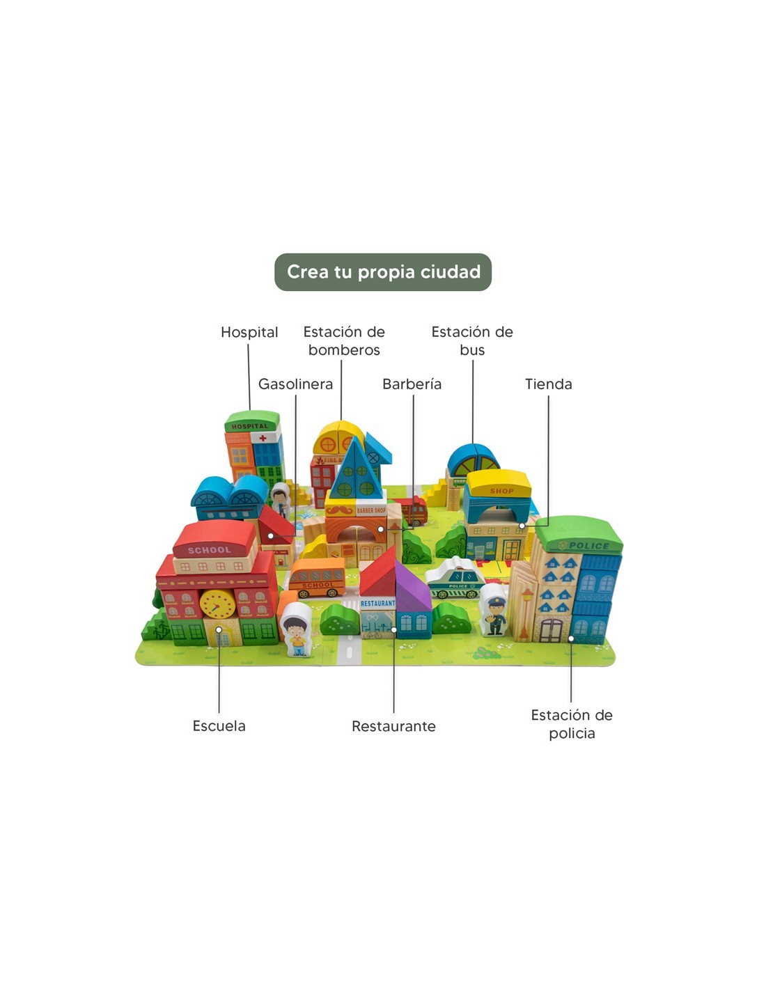 - Crear su propia única ciudad con bloques de construcción de madera, los personajes, y piezas interactivas