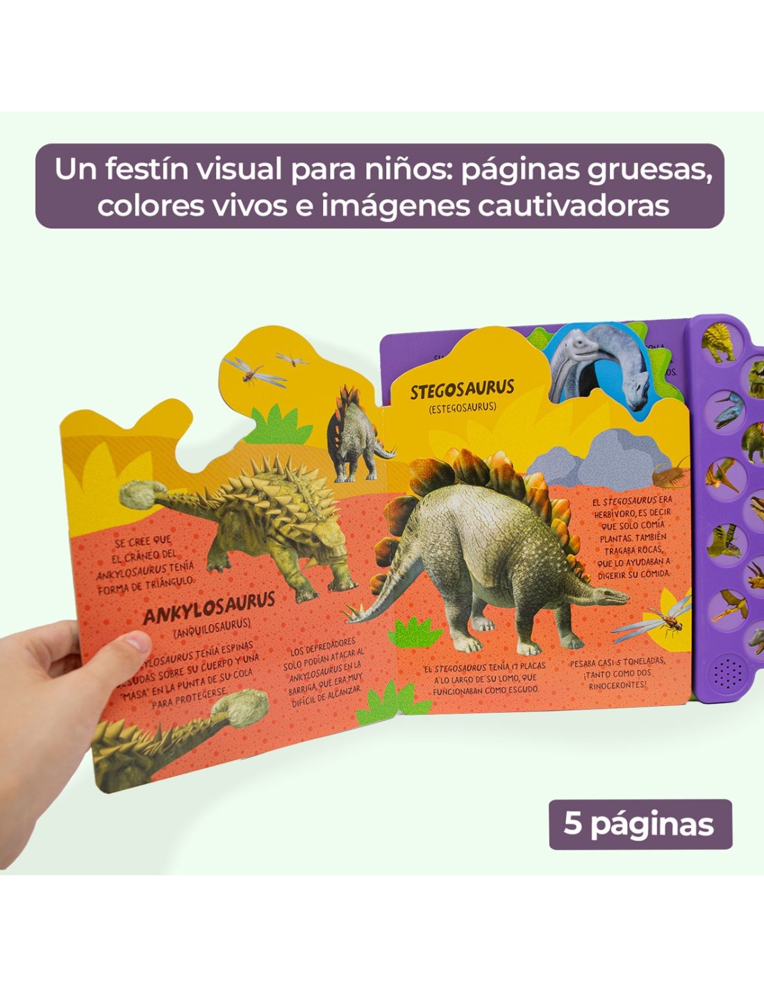 - Desarrollo del lenguaje: Al escuchar los sonidos de los dinosaurios mientras leen, el libro ayuda a mejorar su comprensión auditiva y a desarrollar habilidades lingüísticas tempranas.