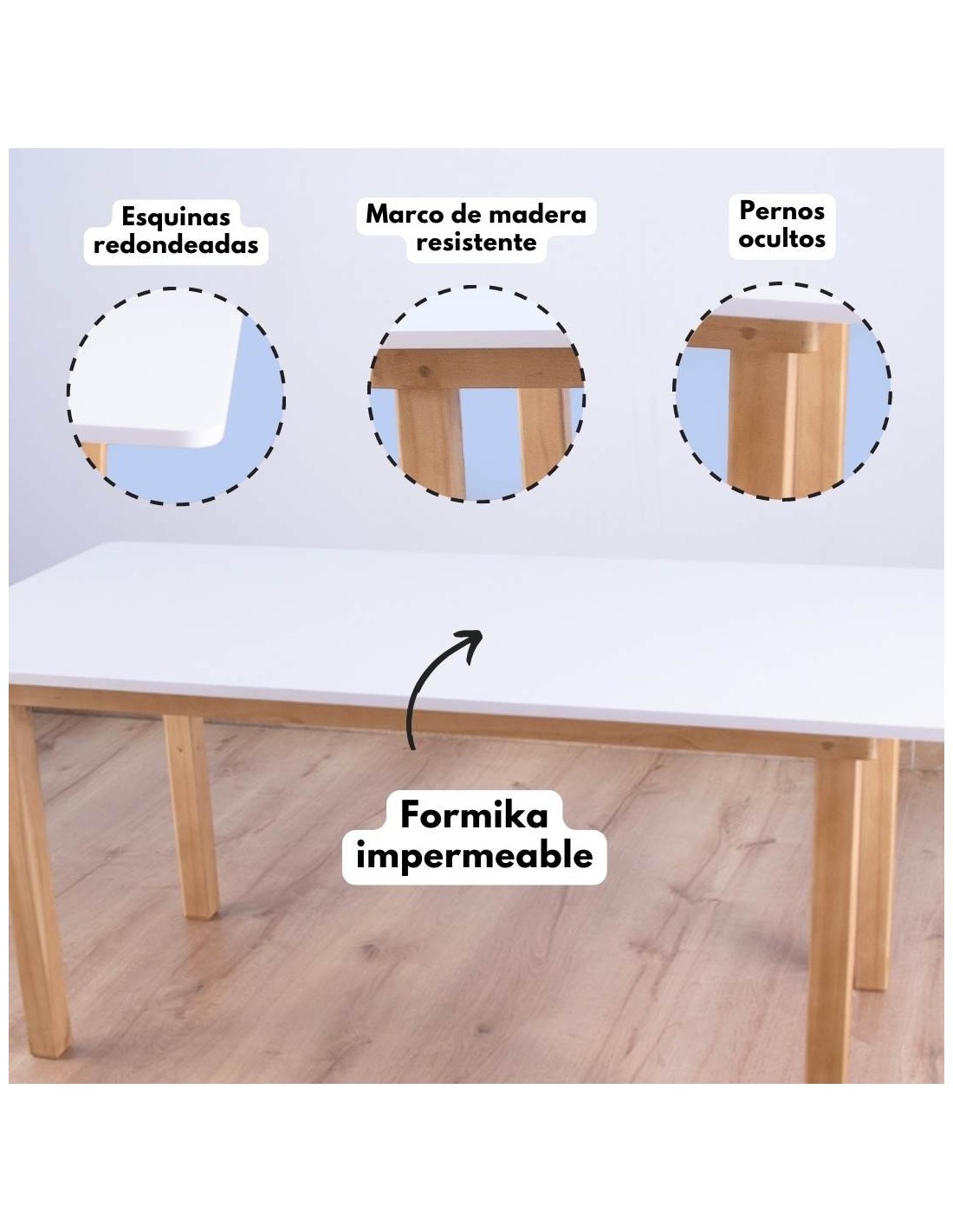 Clic aquí: MESA PREESCOLAR + 6 SILLAS (120 X 60 cm.) BLANCA