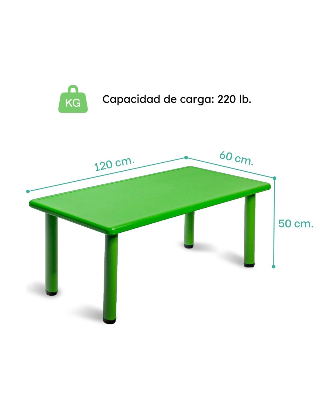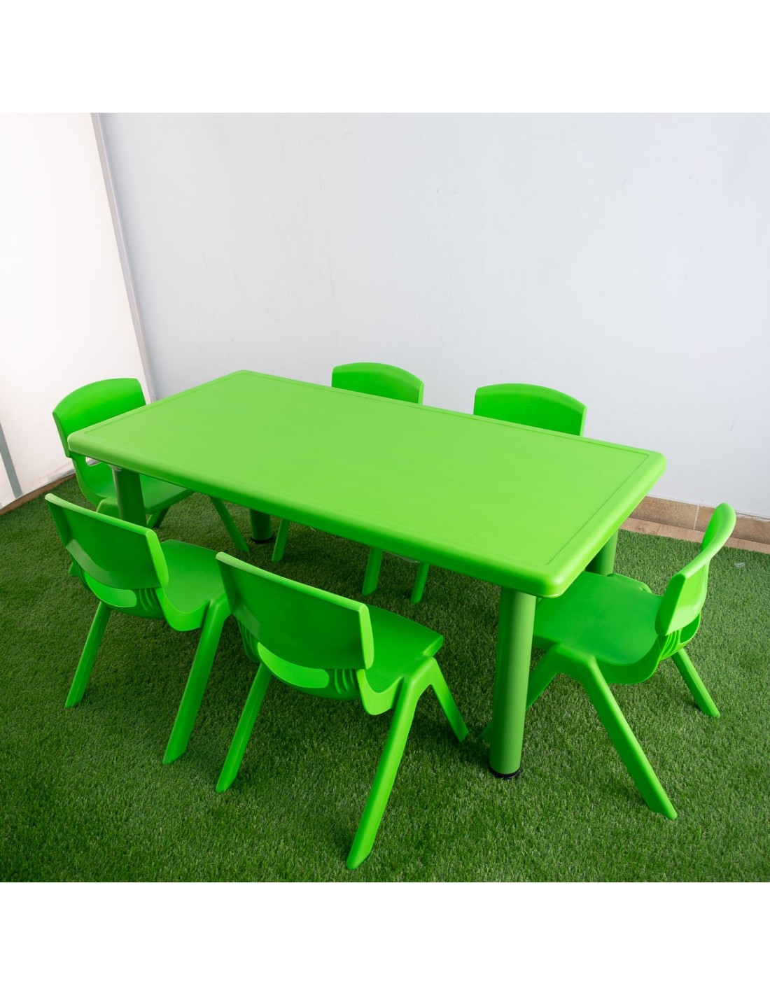Mesa preescolar + 6 sillas en madera (120 x 60 cm.) Verde limón