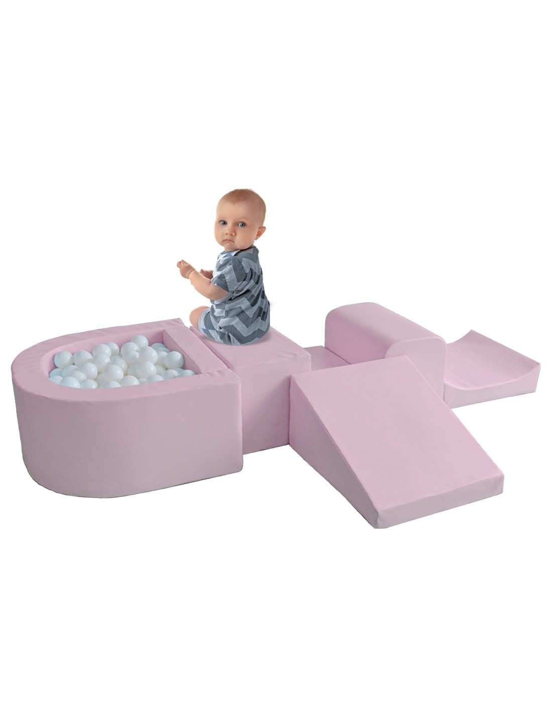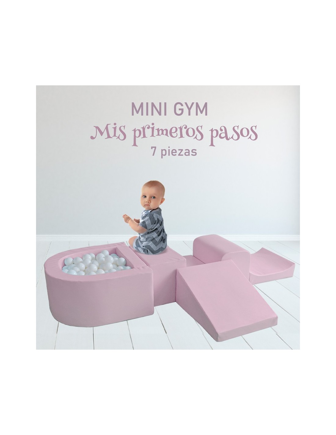 El Mini Gym es un circuito de gateo de 7 piezas creado con la finalidad de funcionar como obstáculos para los bebés, su objetivo es que los bebés suban, trepen, repten, estimula el gateo, el reflejo y el control vestibular (equilibrio).