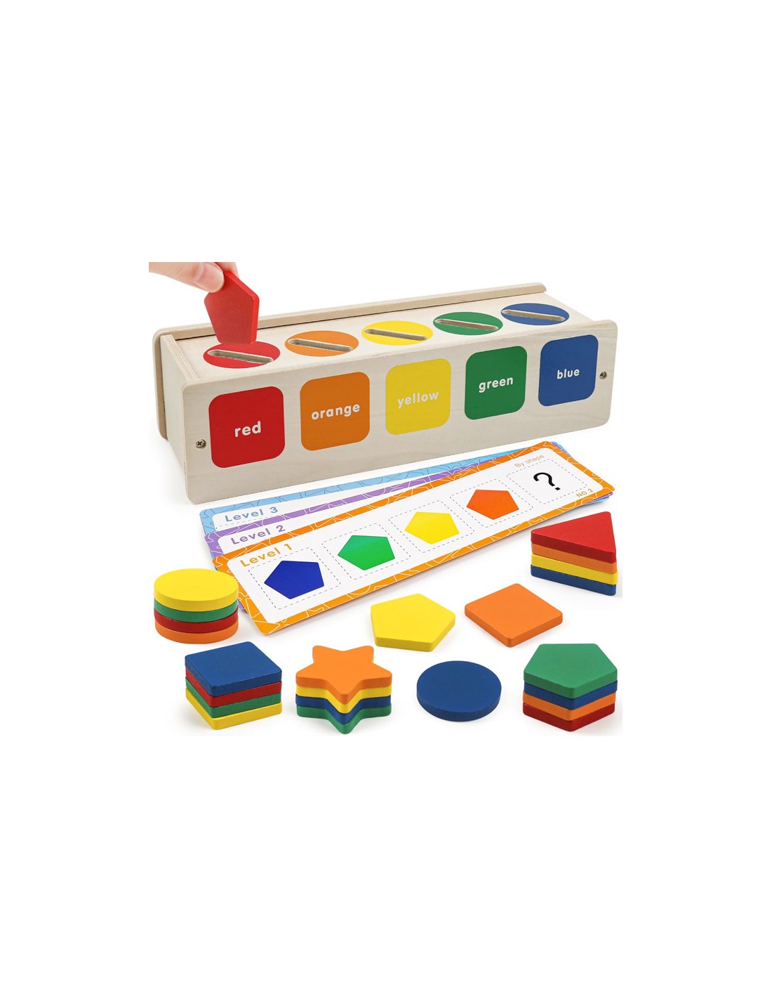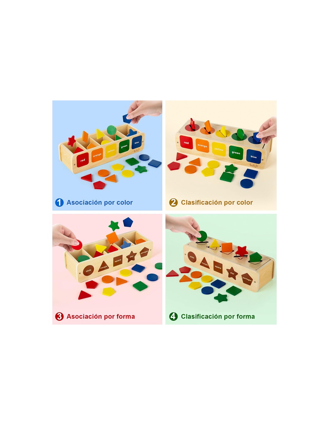 Este juguete Montessori de madera estimula el aprendizaje activo y divertido. Los niños pequeños disfrutan combinando y clasificando los bloques por color y forma, mientras desarrollan habilidades esenciales. Gracias a sus colores brillantes y piezas de fácil manipulación, esta actividad no solo les enseña a reconocer formas y colores, sino que también fortalece la coordinación ojo-mano, la motricidad fina y las habilidades de resolución de problemas. Además, promueve la concentración, la lógica y la autonomía, todo bajo los principios de la filosofía Montessori. Ideal para niños en edad preescolar.