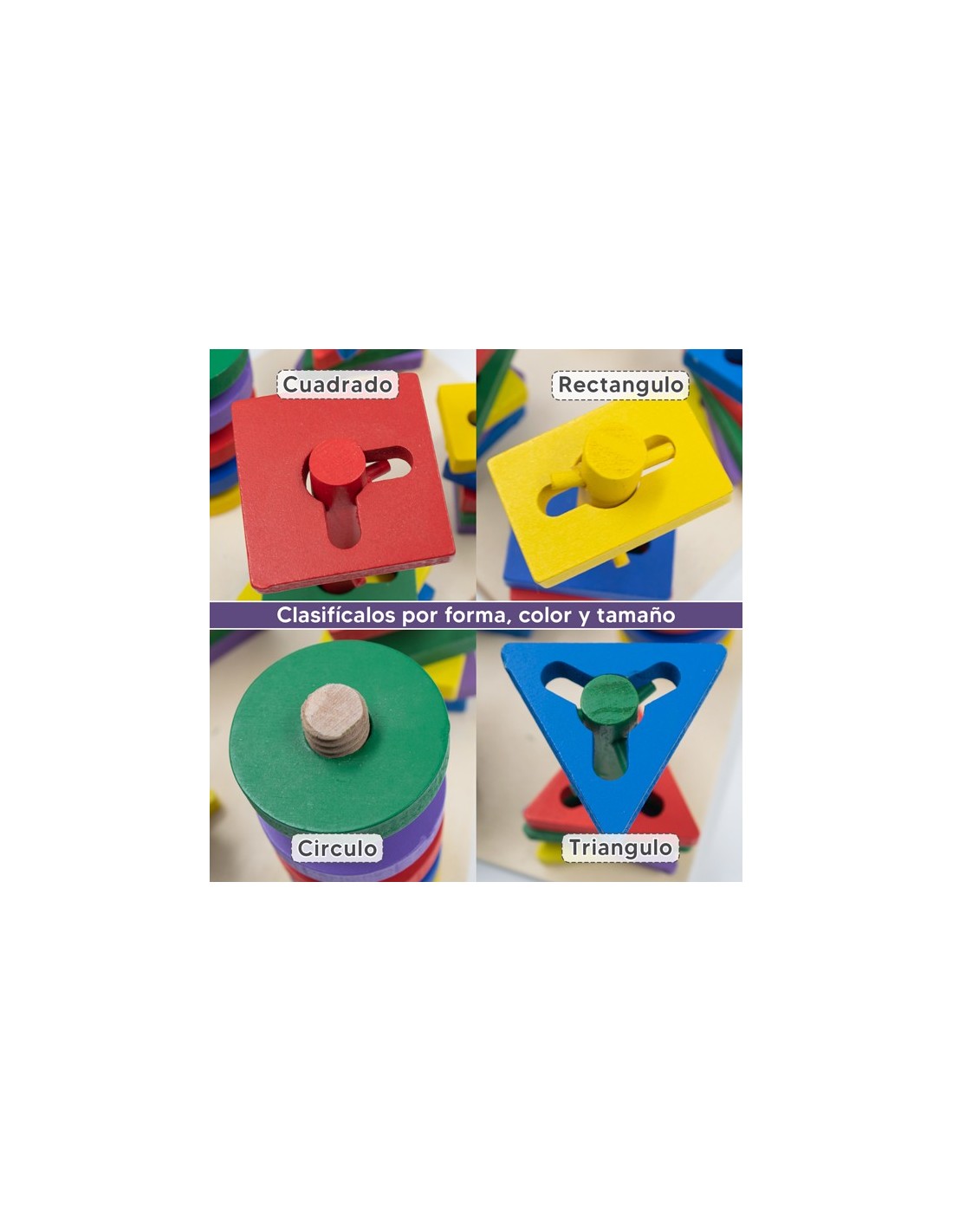 Este es un gran juguete de madera para bebés que los niños pueden aprender mientras juegan.