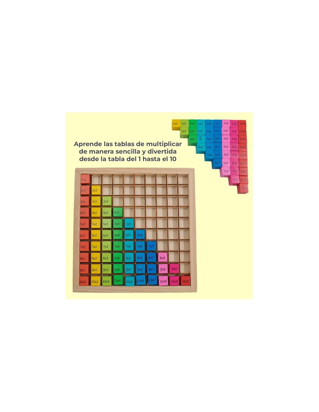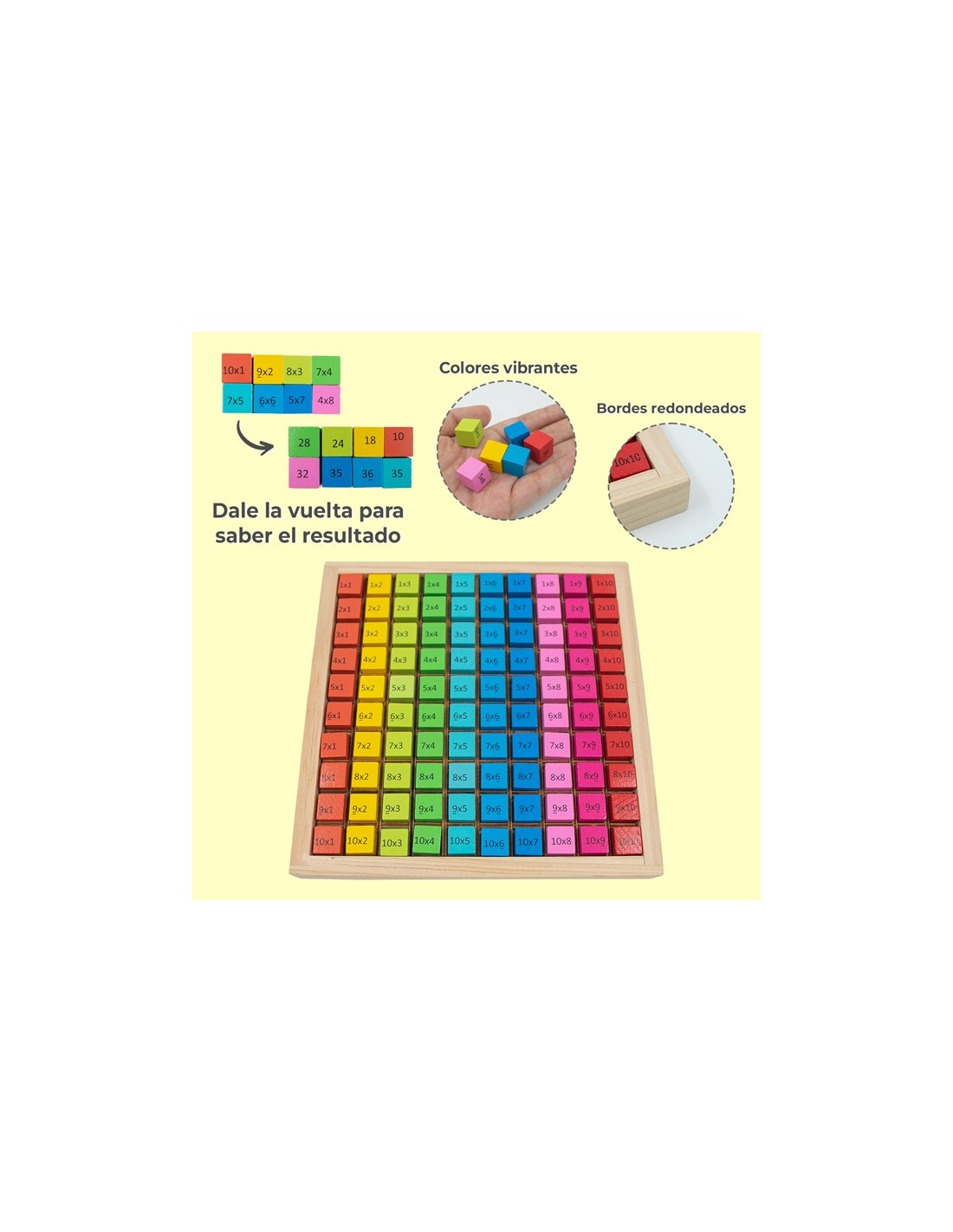 Juego educativo de multiplicación, aprende mientras juegas. Esta tabla de multiplicar ayuda a los niños a reconocer los números y a desarrollar su inteligencia, imaginación y capacidad práctica ademas de tener fichas coloridas para explotar su creatividad creando diferentes formas y figuras.