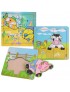 Pack de 3 encajables, encajable de una pieza, modelo "cerdito", encajable de 2 piezas modelo "vaca", encajable modelo "peces" 4 piezas.