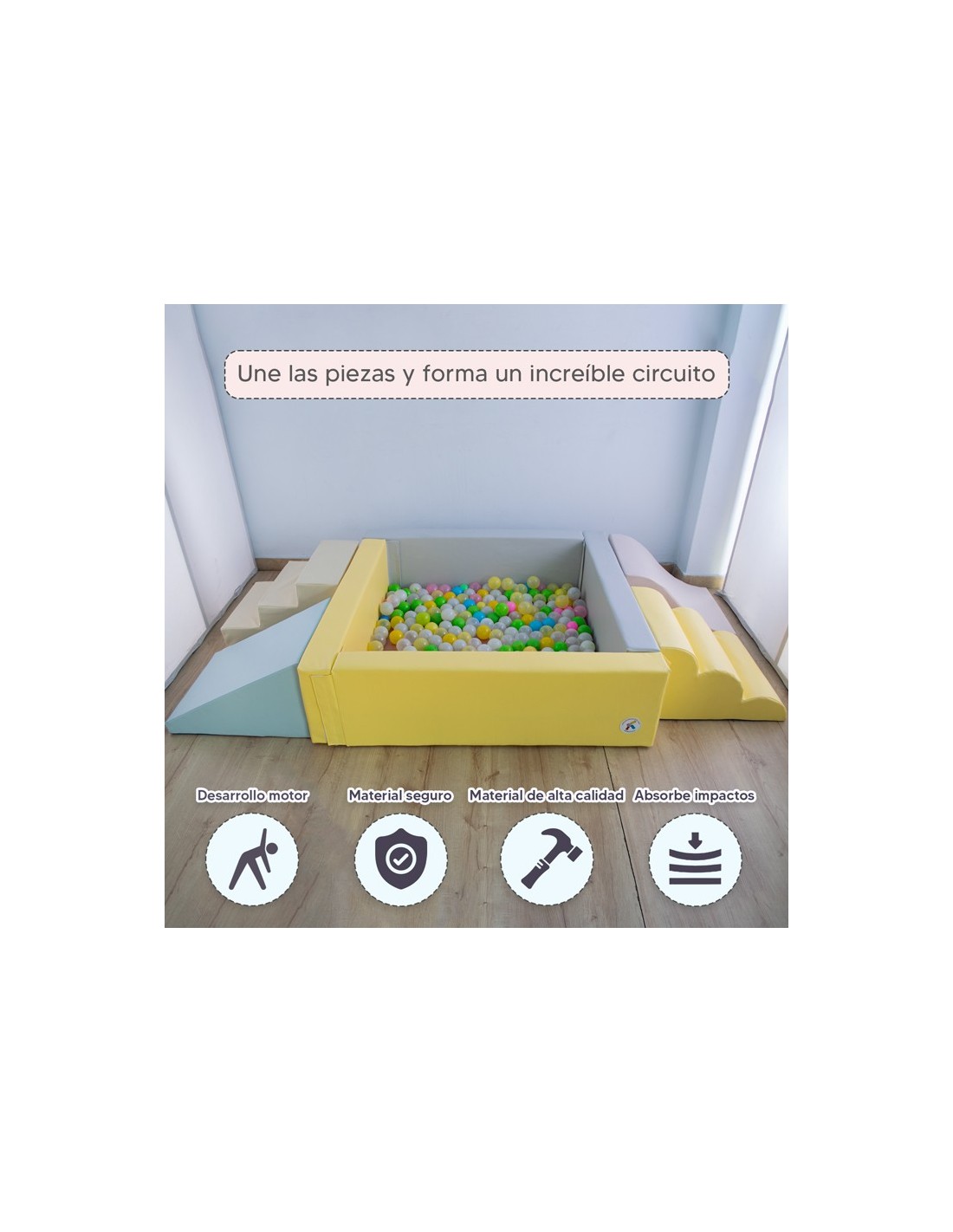 - El estímulo sensorial, visual y táctil construye habilidades motoras gruesas, enfoque y juego cooperativo.