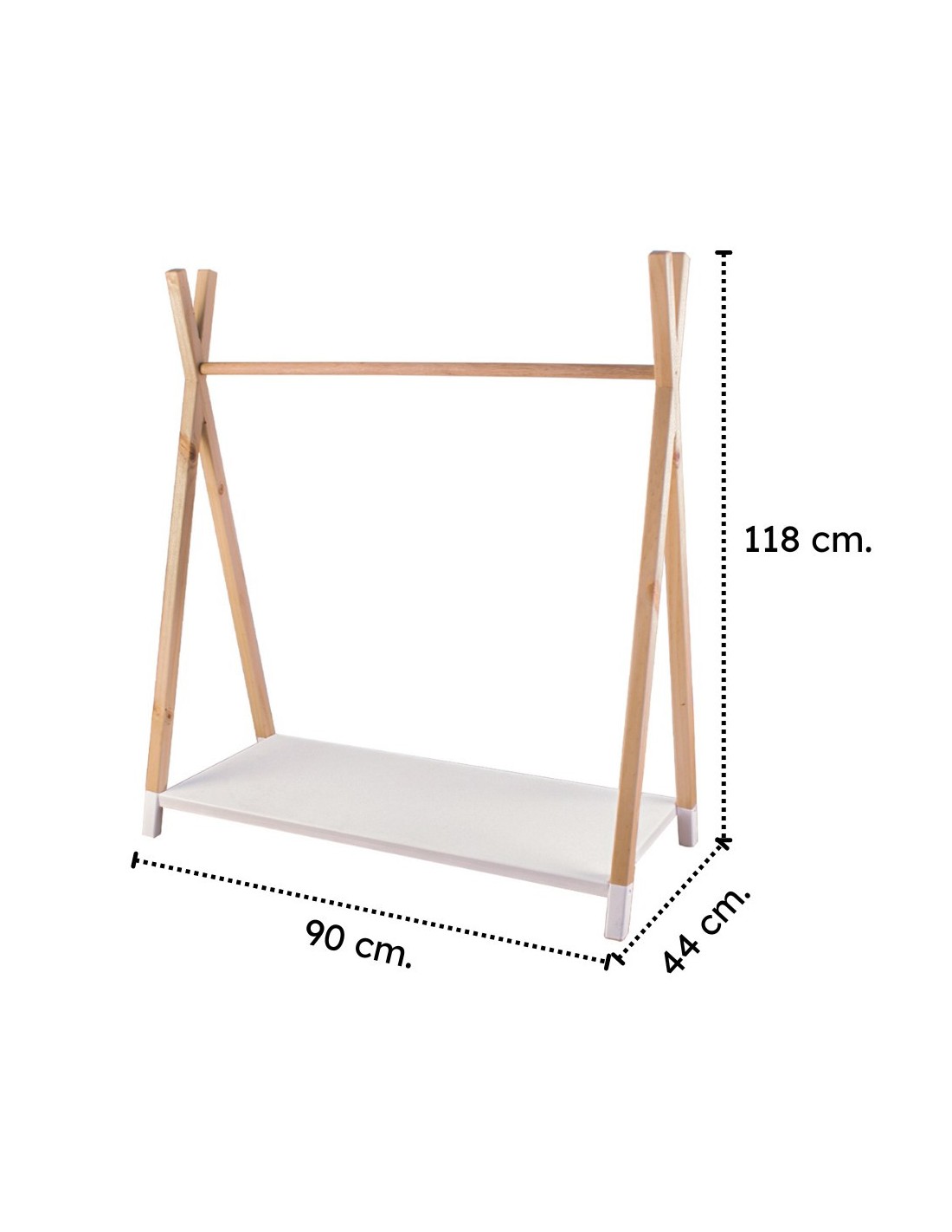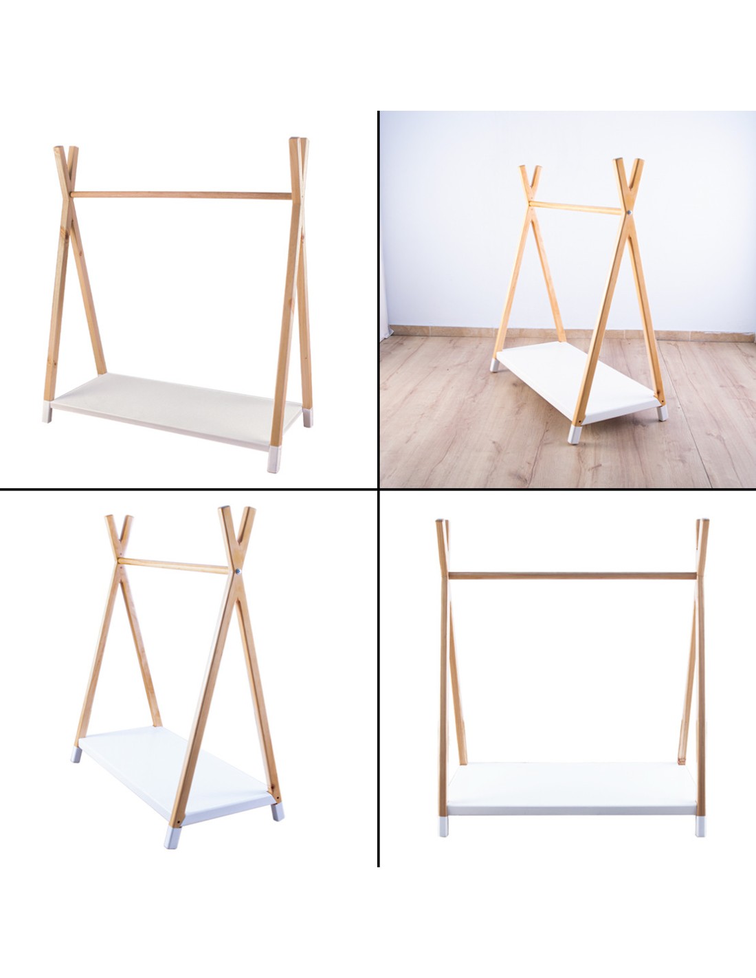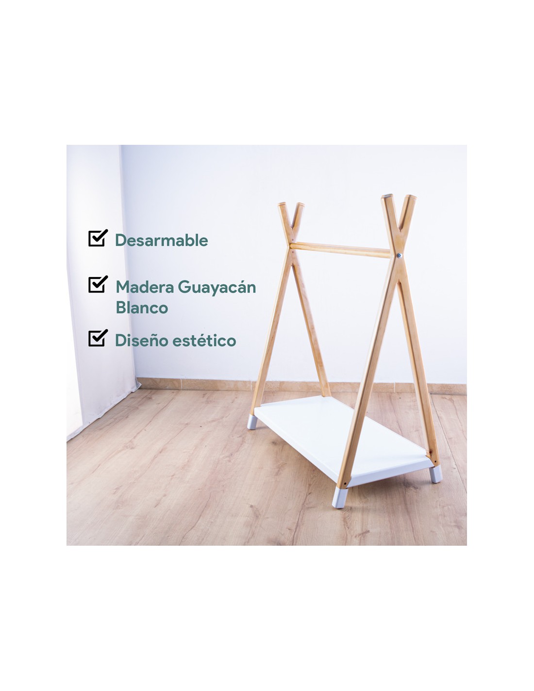 Este perchero infantil estilo Montessori promueve la autonomía desde edades tempranas. Perfecto para colgar disfraces, batas o ropa de uso escolar, está elaborado en resistente madera de Guayacán blanco y es completamente desarmable. Su diseño funcional y estético se adapta a espacios educativos o del hogar, fomentando el orden y la independencia en los niños.