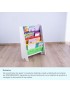 Este revistero es ideal para espacios pequeños, se puede colocar fácilmente en la sala, el comedor o el cuarto de juegos. Es liviano y fue creado para que los niños puedan acceder a los libros de manera super fácil ya que esta adaptado a la altura de ellos. El poder acceder a los libros con facilidad fomenta la exploración y curiosidad por la lectura.